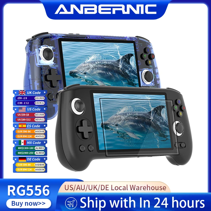 Comprar ANBERNIC-consola de juegos portátil RG556, Unisoc T820, Android 13, Pantalla AMOLED de 5,48 pulgadas, 5500mAh, WIFI, Bluetooth, reproductores de vídeo Retro