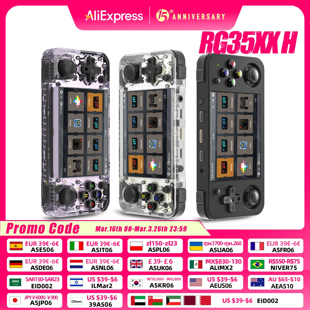 Comprar ANBERNIC-consola RG35XX H de 64 bits para videojuegos, videoconsola Retro con pantalla IPS de 3,5 pulgadas, 640x480, batería de 3300 mAh