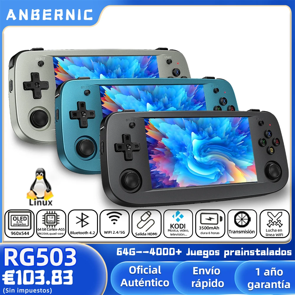 Comprar Anbernic-consola de videojuegos portátil Retro RG503, reproductor de juegos portátil con pantalla OLED de 4,95 pulgadas, sistema Linux, RK3566, Bluetooth, 5G, Wif