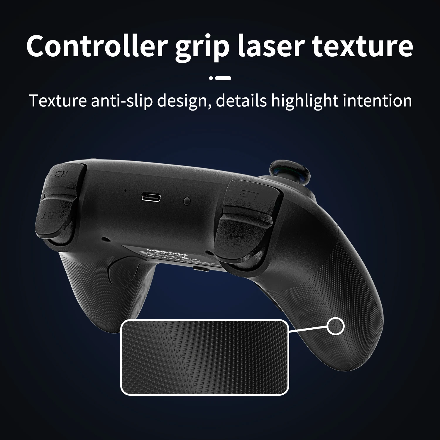 Admite control de luz por joystick, ajuste de intensidad de vibración, tres modos de conexión, intercambios de diseño ABXY de software, acción secuencial/simultana de una tecla (programación Macro), fuego rápido TURBO semiautomático/completamente automático, admite actualizaciones de firmware por cable.