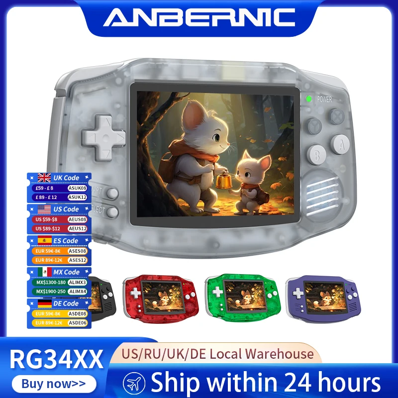 ¡Consola de juegos retro ANBERNIC RG34XX, apariencia y botones clásicos, apariencia compacta, la mejor opción para regalos de Navidad!!
