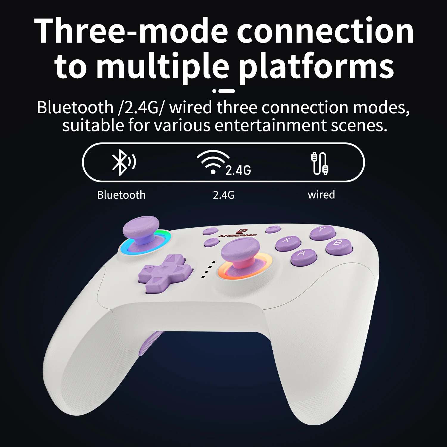 Supports joystick light control, vibration intensity adjustment, three connection modes,Software ABXY layout interchanges, one-key sequential/simultaneous action (Macro programming), semi-auto/full-auto TURBO rapid fire, supports wired firmware upgrades.