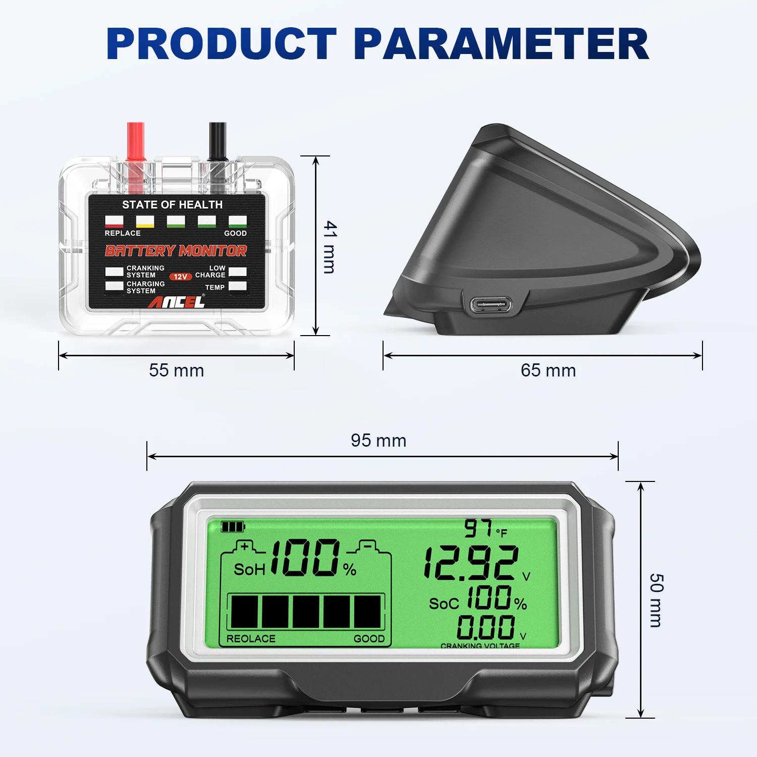 Comprar ANCEL-probador de batería de coche BM200 PRO, Monitor LED de 12V, pantalla frontal, resistente al agua, SOH SOC, herramientas de Analizador de capacidad de carga de batería