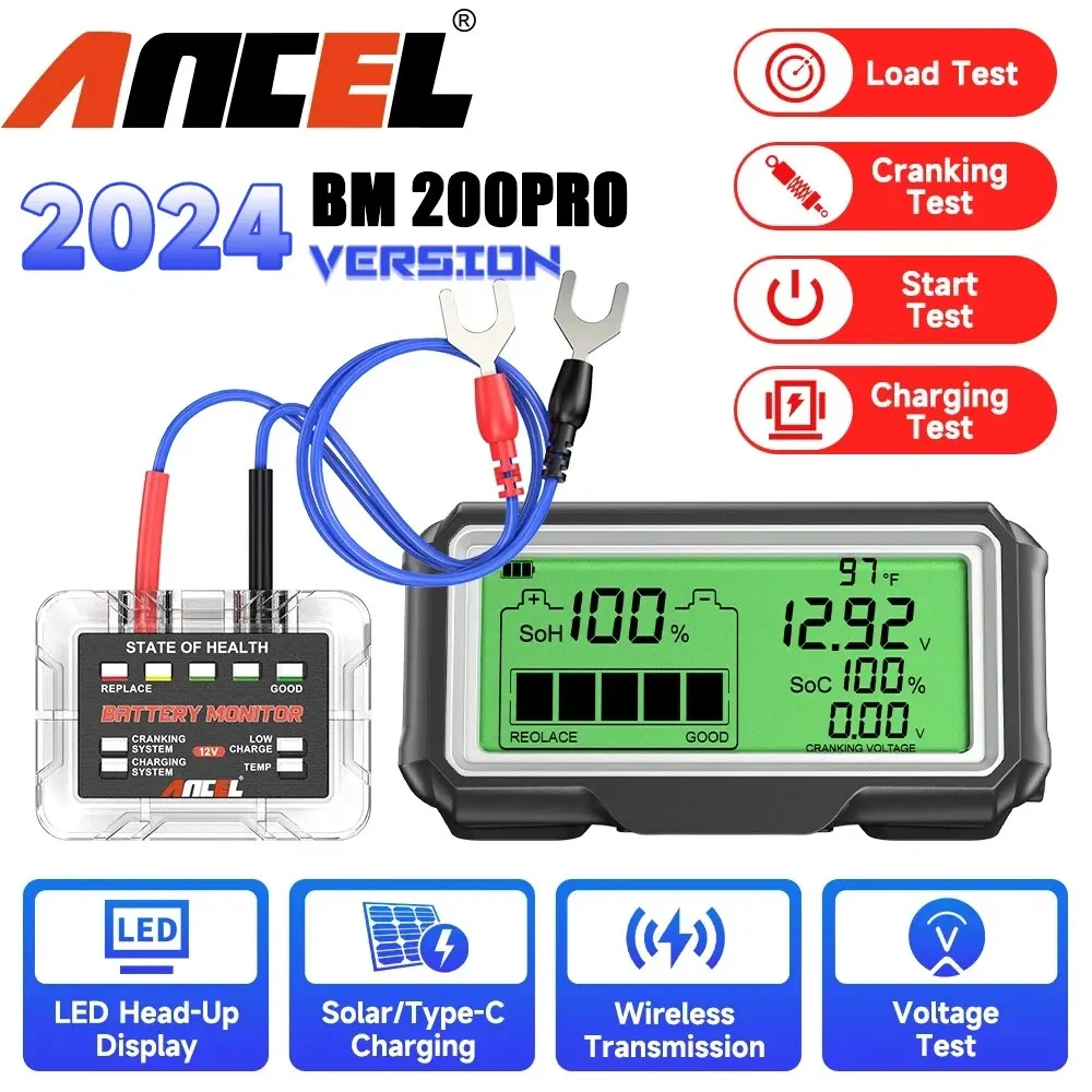 Comprar ANCEL-probador de batería de coche BM200 PRO, Monitor LED de 12V, pantalla frontal, resistente al agua, SOH SOC, herramientas de Analizador de capacidad de carga de batería