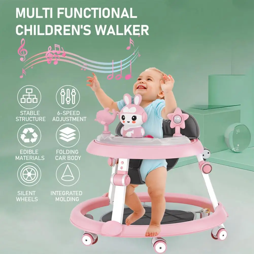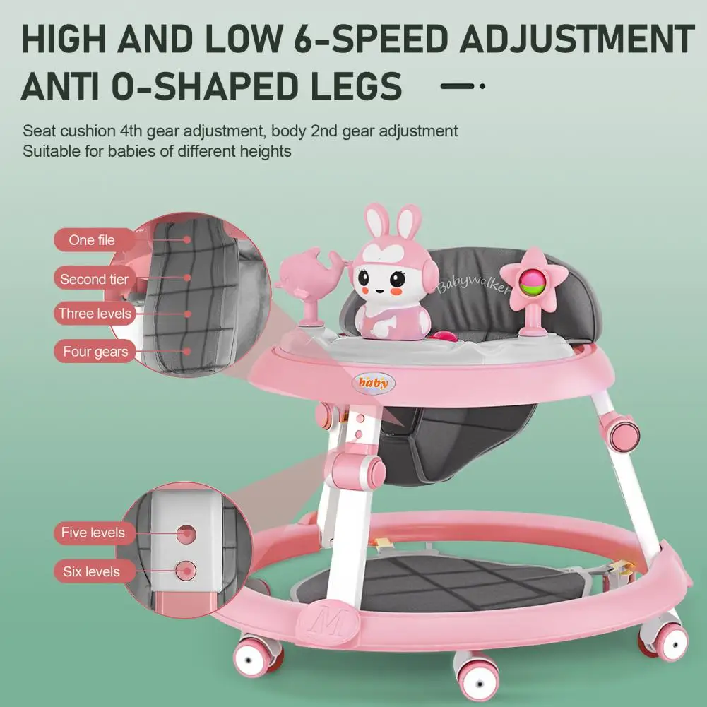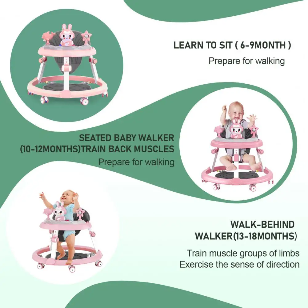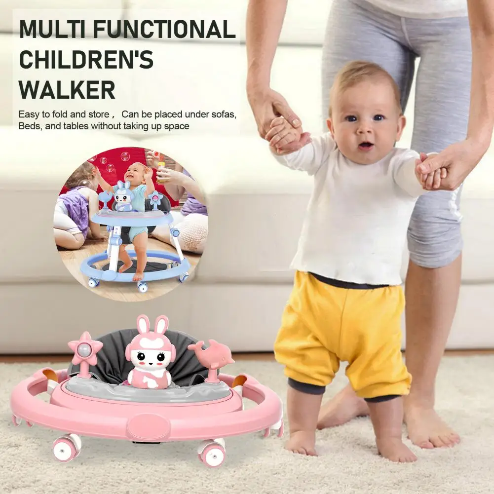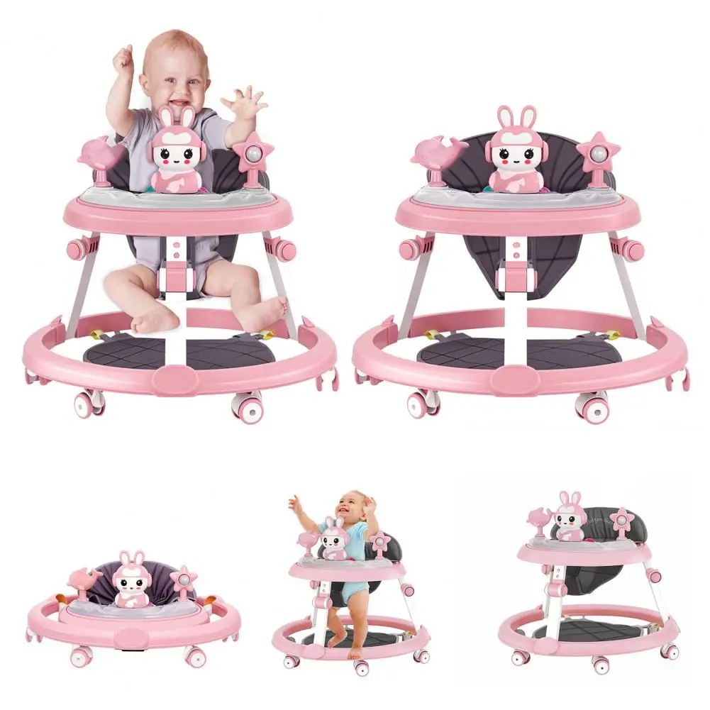 Andador plegable para bebés con ruedas silenciosas, andador de actividades para niños con ajuste de altura de 7 niveles, centro de actividades antisobollo para prevenir varum genuino, andador de aprendizaje para bebés de 6 a 18 meses