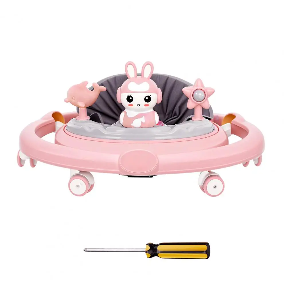 Tamaño perfecto: la altura total del andador para bebés es de 52 cm y la altura de los postes de soporte es de 40 cm.La distancia desde el cojín hasta el suelo es de 20-27 cm.La altura del juguete de dibujos animados es de 12 cm y la altura de las ruedas es de 5 cm.
