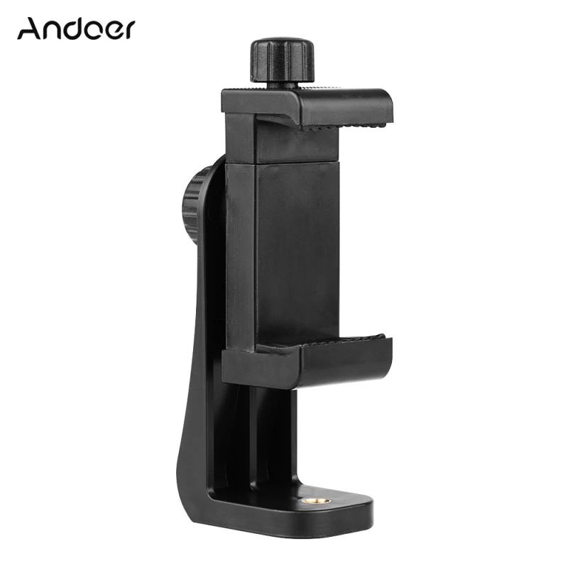 El soporte para teléfono inteligente Andoer CB1 admite la mayoría de los teléfonos inteligentes de 5,5 ~ 10,1 cm/2,1 ~ 3,9".Es de pie y hay un orificio para tornillos de 1/4" en la parte inferior del soporte y en la parte inferior del clip.Puede colocarlo sobre una superficie plana, montarlo en un control deslizante/trípode, etc.El clip puede girar 360°verticalmente libremente para disparar desde diferentes ángulos.