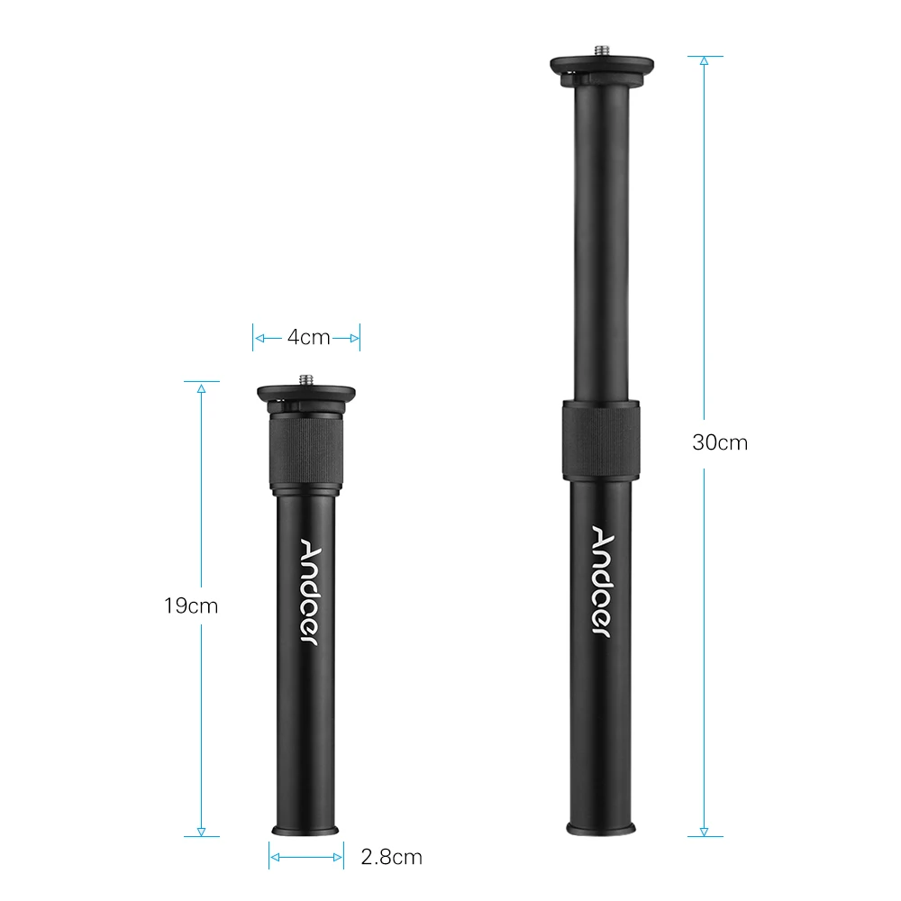 Comprar Andoer trípode de aleación de aluminio de 2 secciones, tubo de extensión de eje de columna central, altura ajustable de 19-30cm