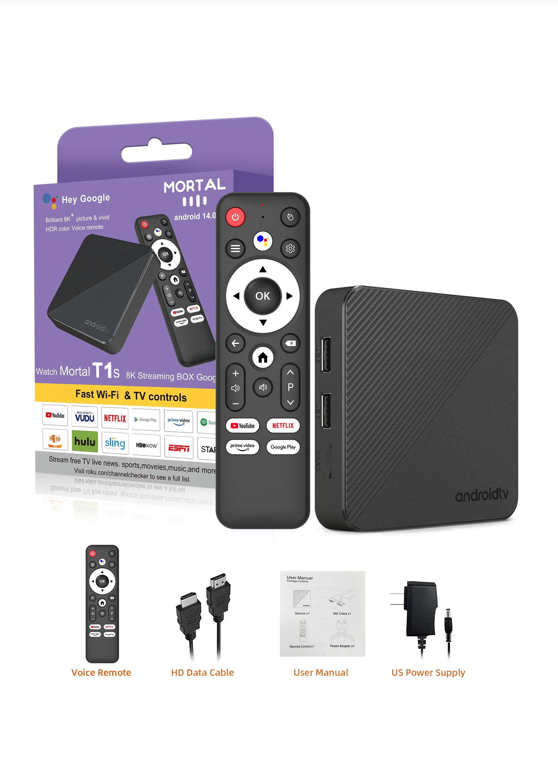 Android 14 Mortal T1S TV Box Wifi6 1000M Smart 4K TV en vivo gratis cine en casa AllwinnerH313 transmisión multimediaVersión global Youtube