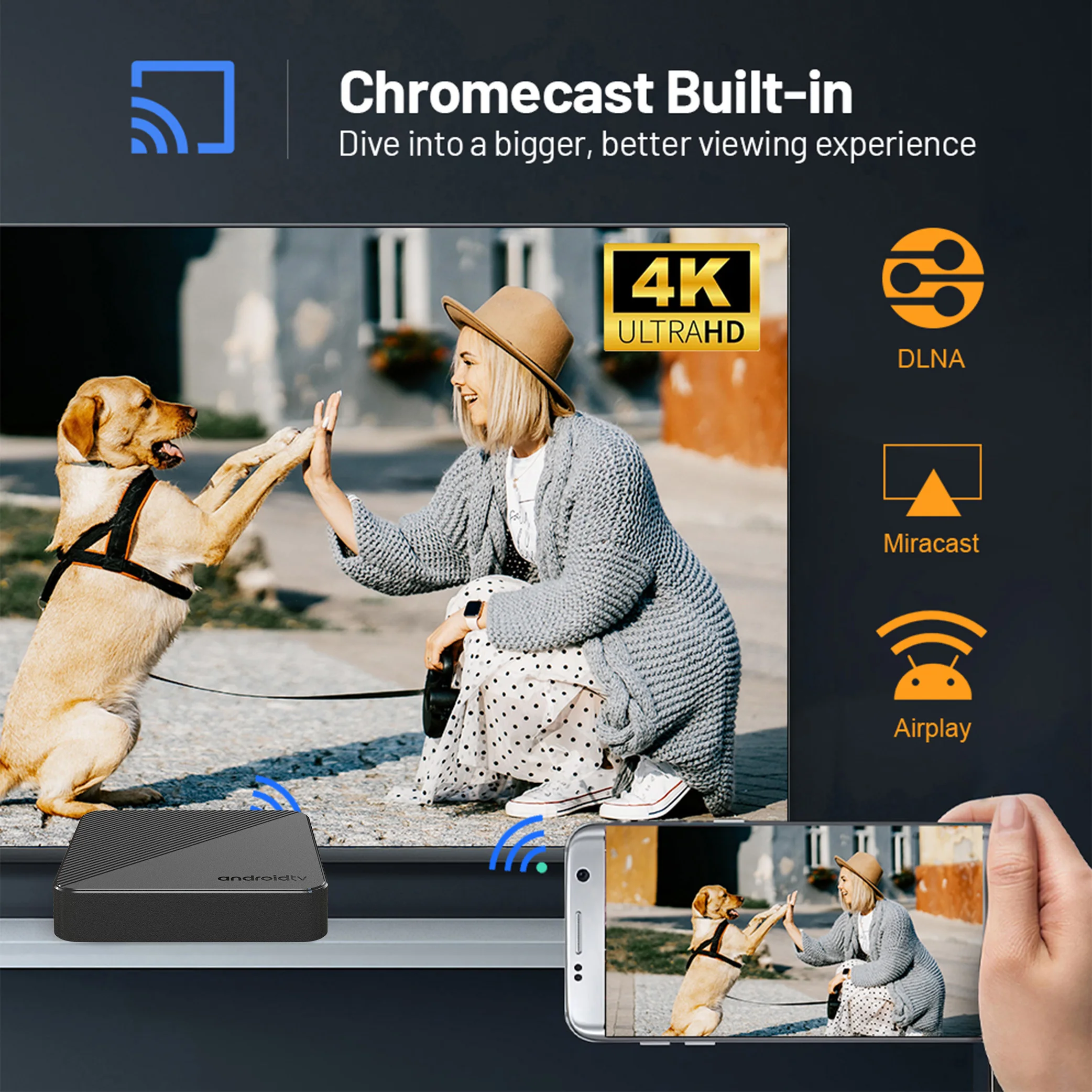 T1S Andriod TV Box tiene WiFi integrado de 2,4G/5GHz 6, que garantiza descargas y velocidades de carga más rápidas y estables.