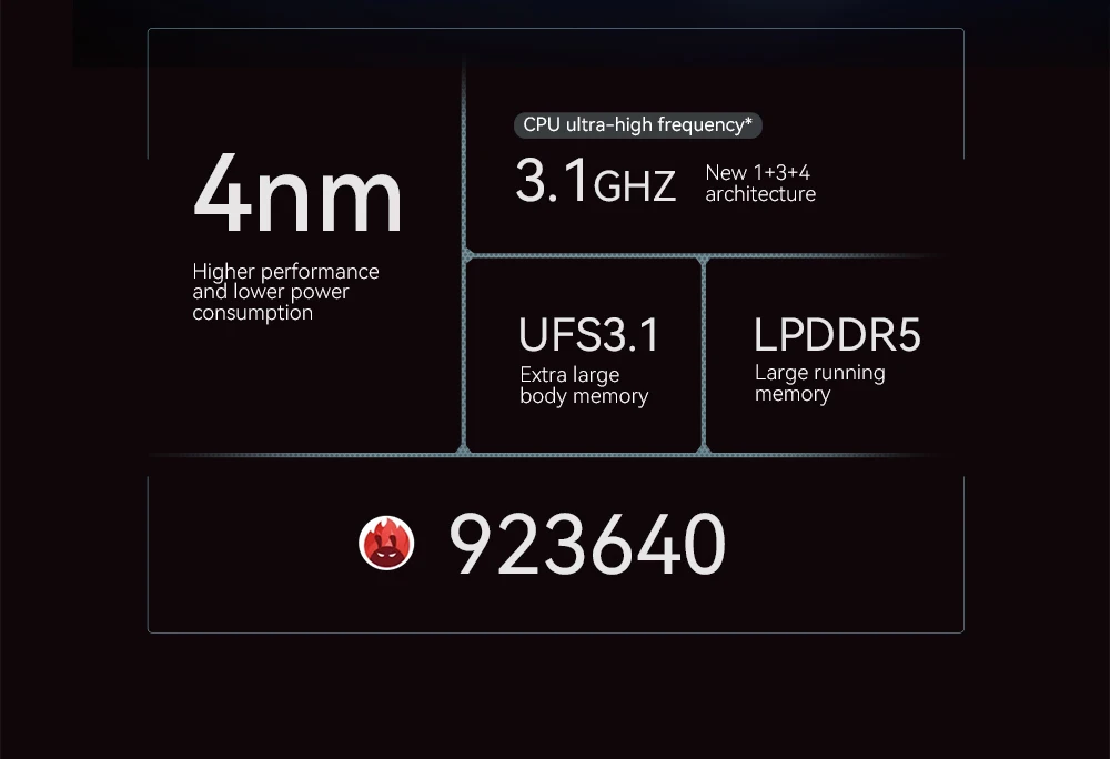 MTK Dimensity 8200 (MT6896) Octa-core,4nm, 3,1 GHz