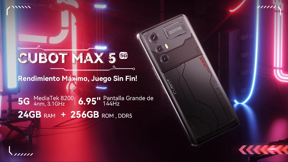 Comprar Android smartphone 5G CUBOT MAX 5, Dimensity 8200 de 4nm, pantalla grande de 6,95" y 144Hz, 24GB de RAM (12GB + 12GB), ROM de 256GB, 5g movil para juegos, NFC, agregar al carrito