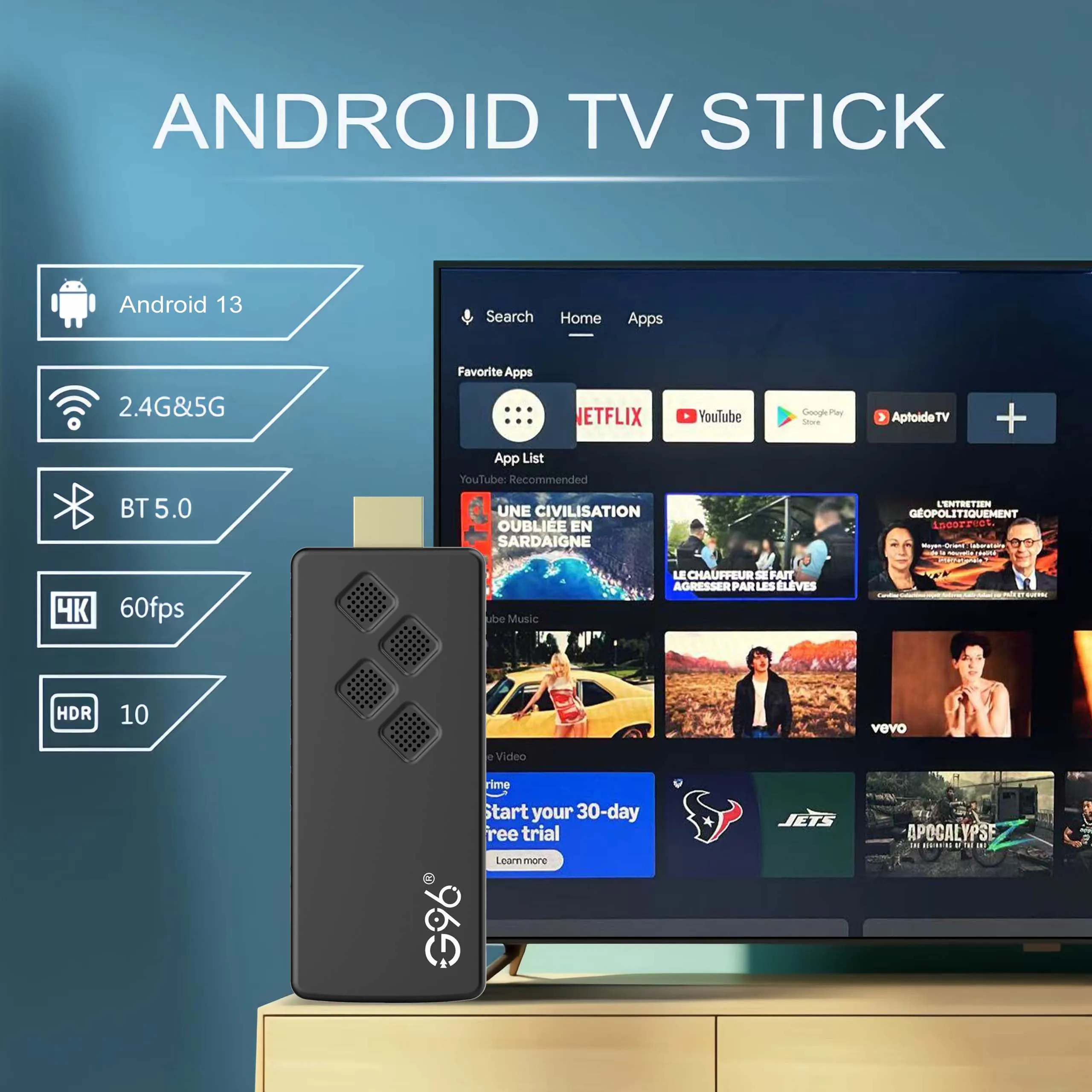 G96 TV Stick Andriod Stick 4K Ultra HD con Control remoto por voz Reproductor multimedia de transmisión Android TV BOX
