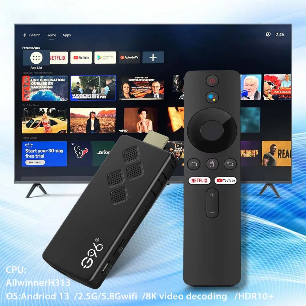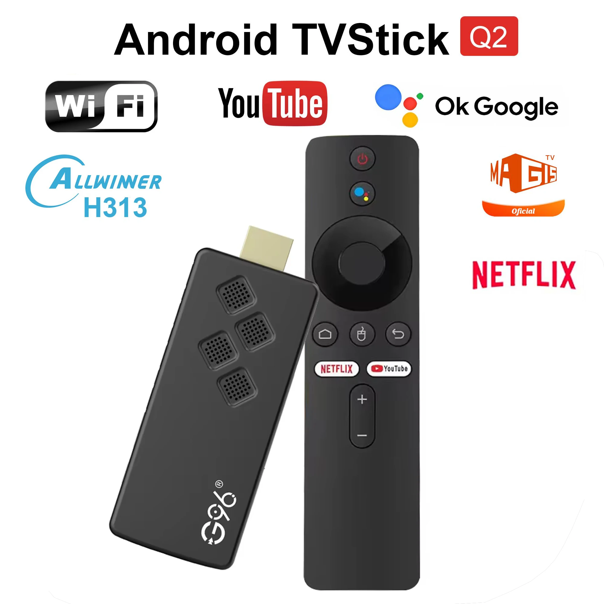 Comprar Android TV Stick Q2 Allwinner H313 Quad Core 4K Transmisión multimedia portátil Netflix Youtube Asistente de Google 2 GB 16 GB Multiidioma