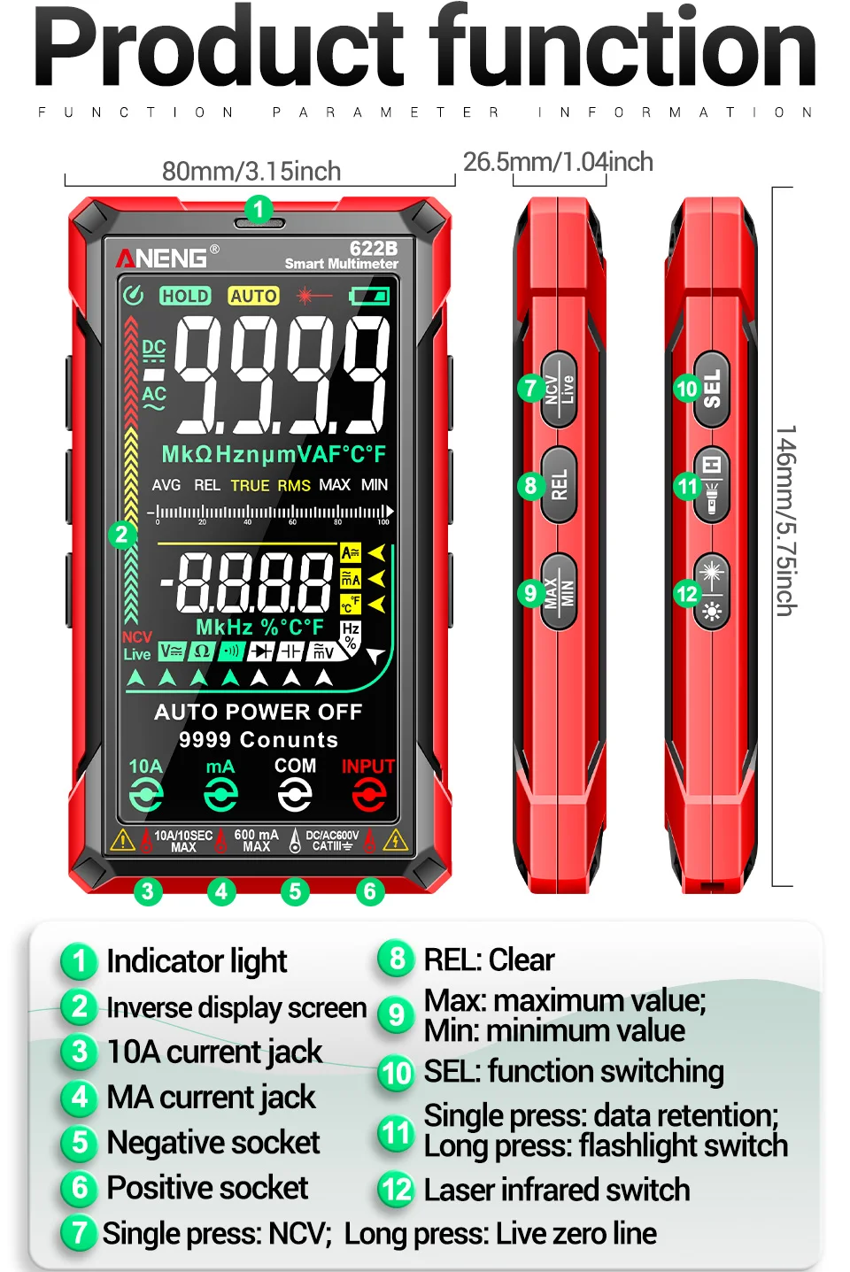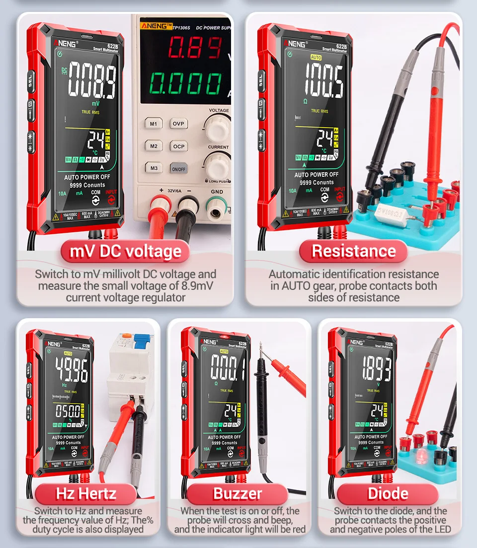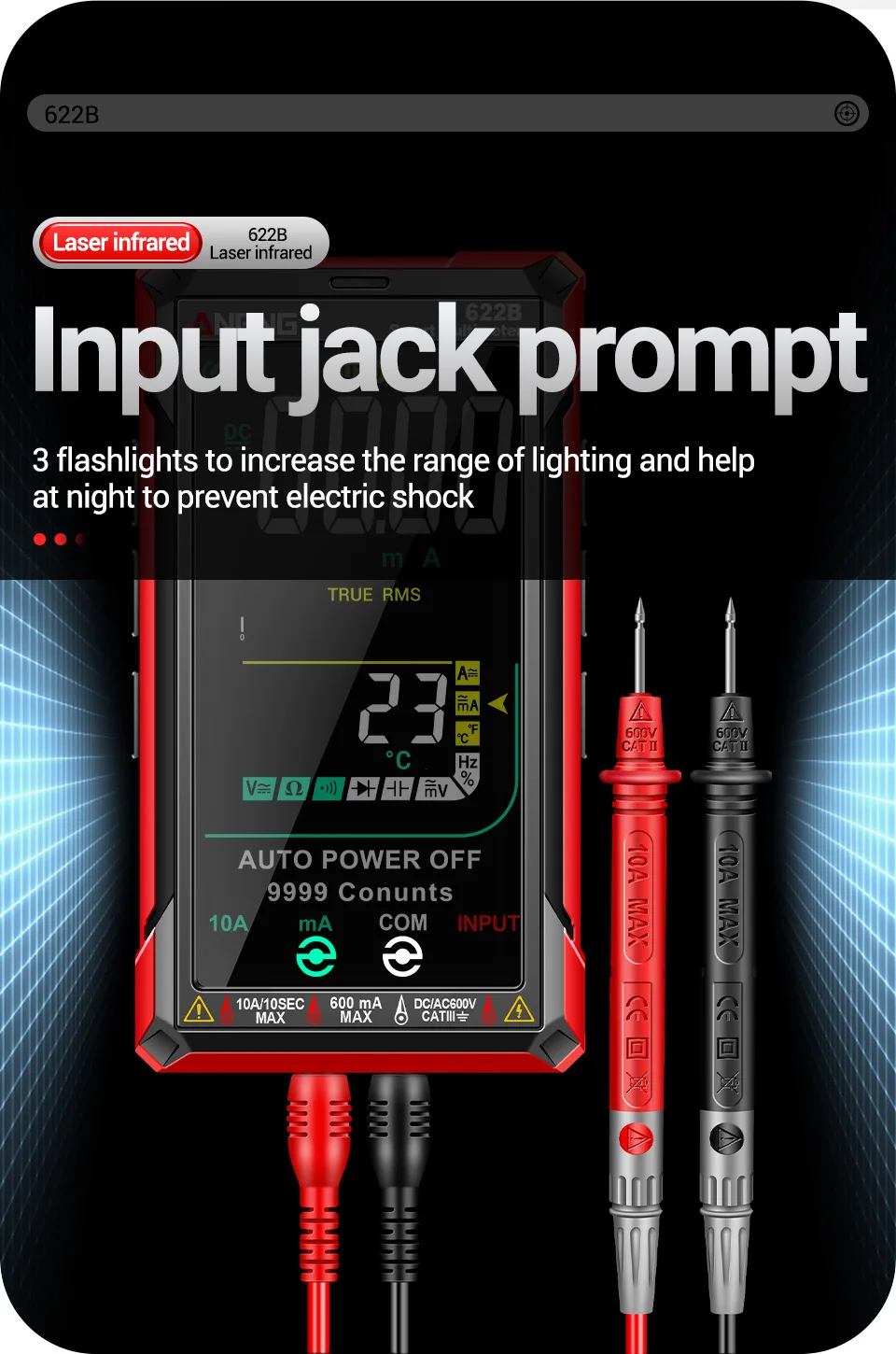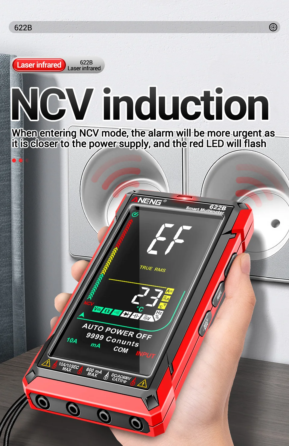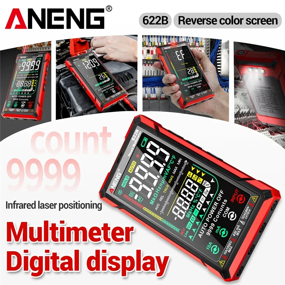 Comprar ANENG 622B multímetro Digital inteligente 9999 recuentos rango automático valores eficaces verdaderos resistencia de voltaje CA Ohm capacitancia Hz probador prueba