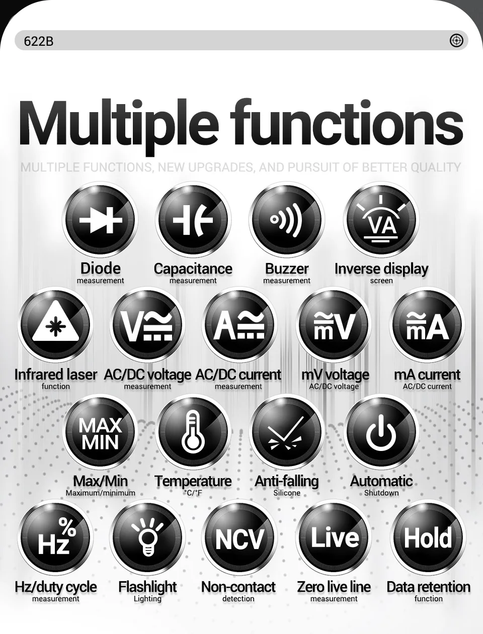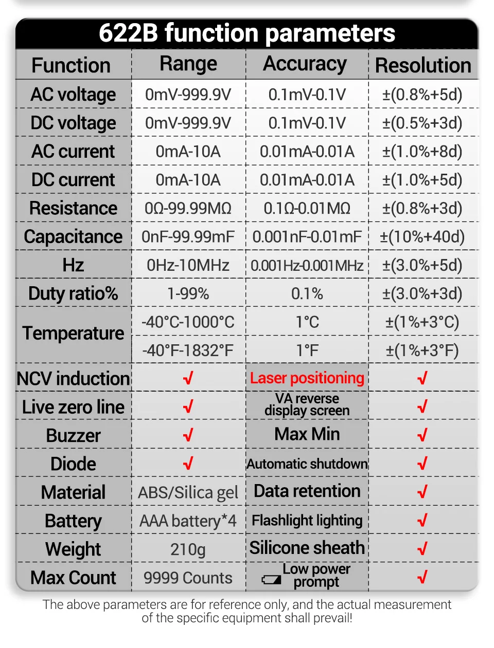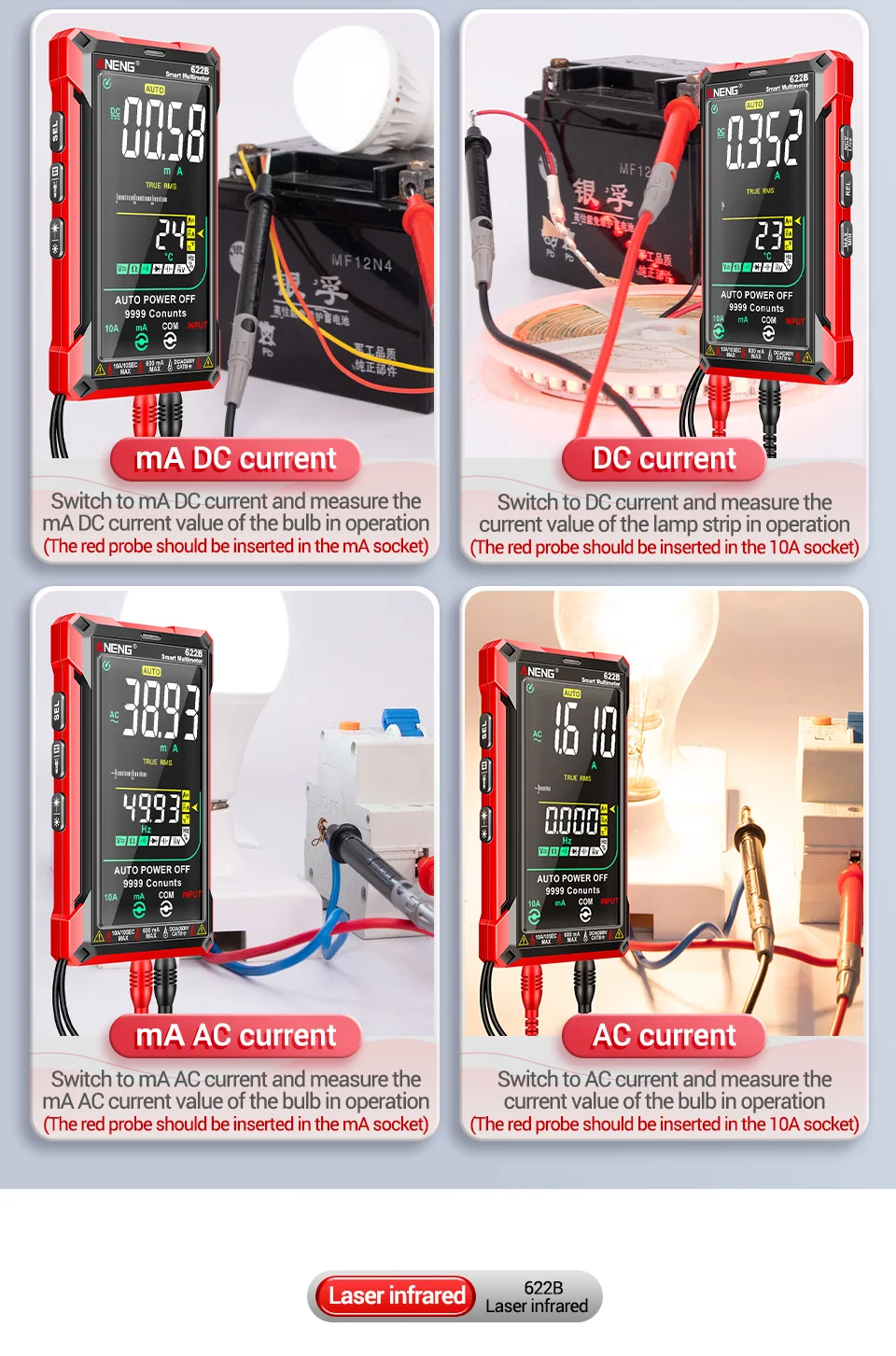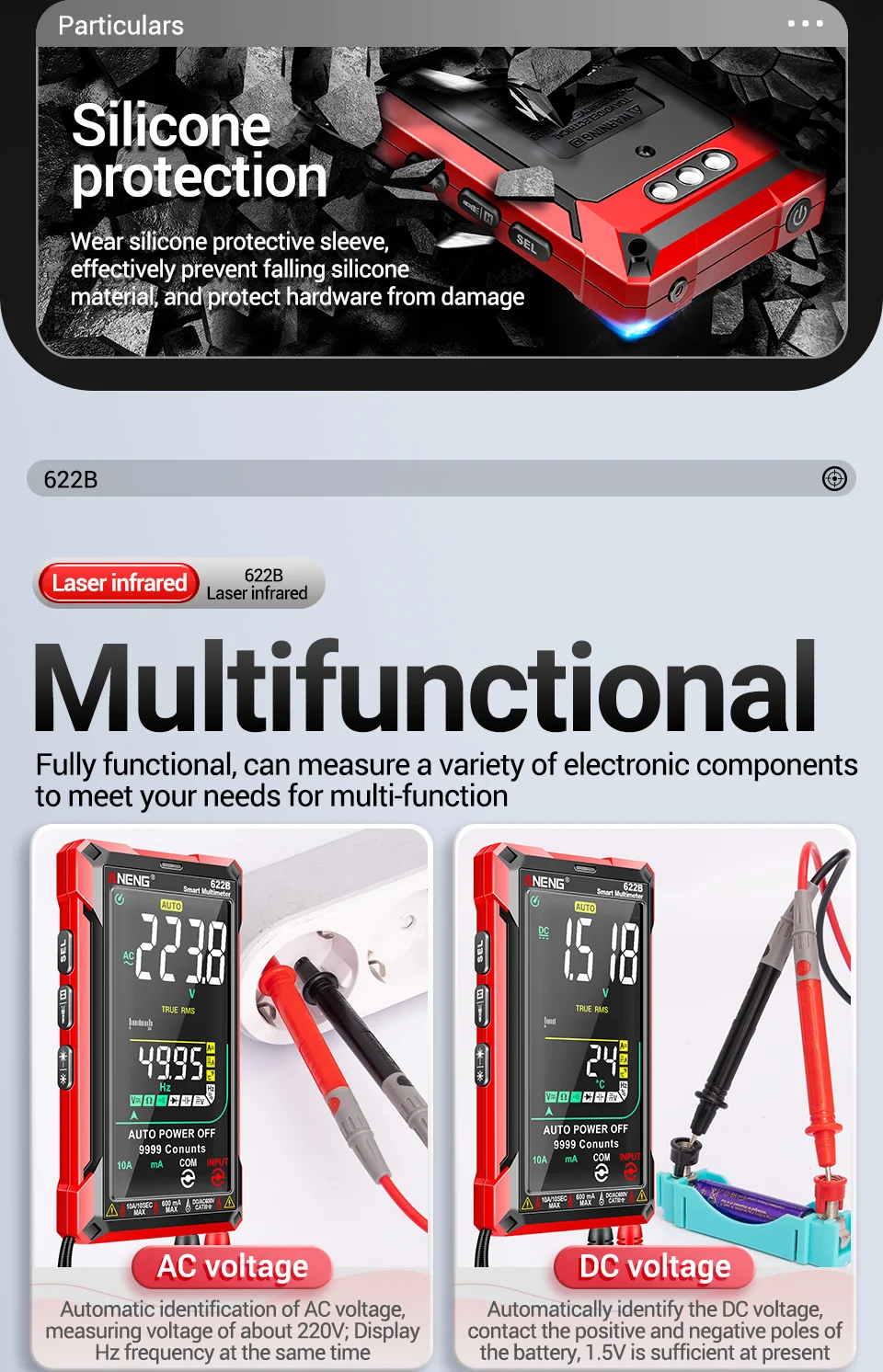 Comprar ANENG 622B multímetro Digital inteligente 9999 recuentos rango automático valores eficaces verdaderos resistencia de voltaje CA Ohm capacitancia Hz probador prueba