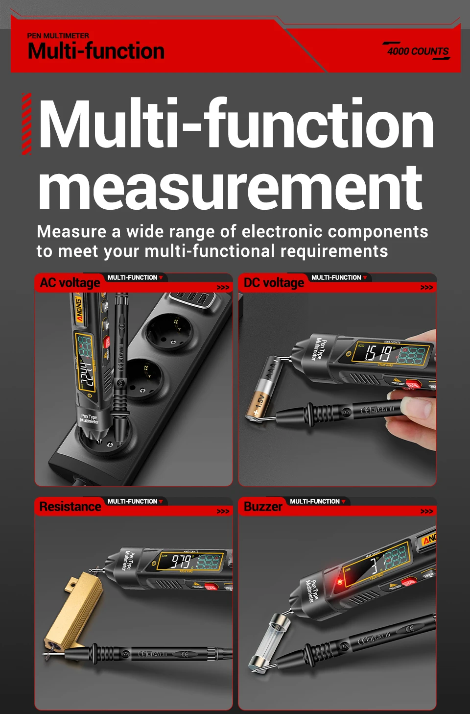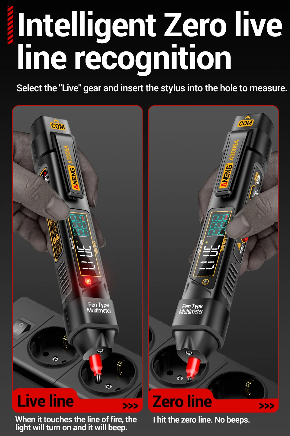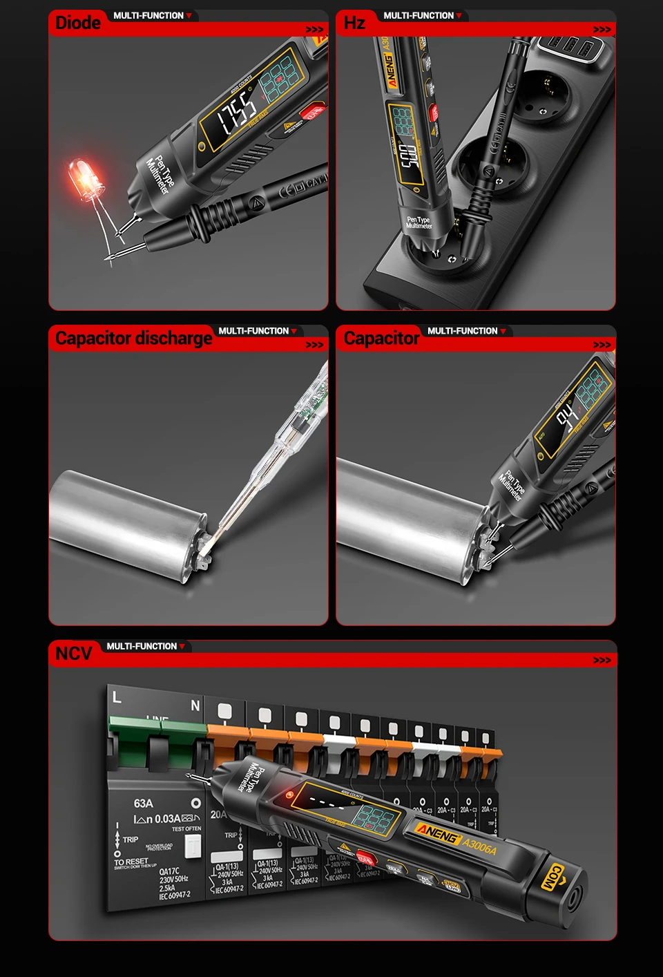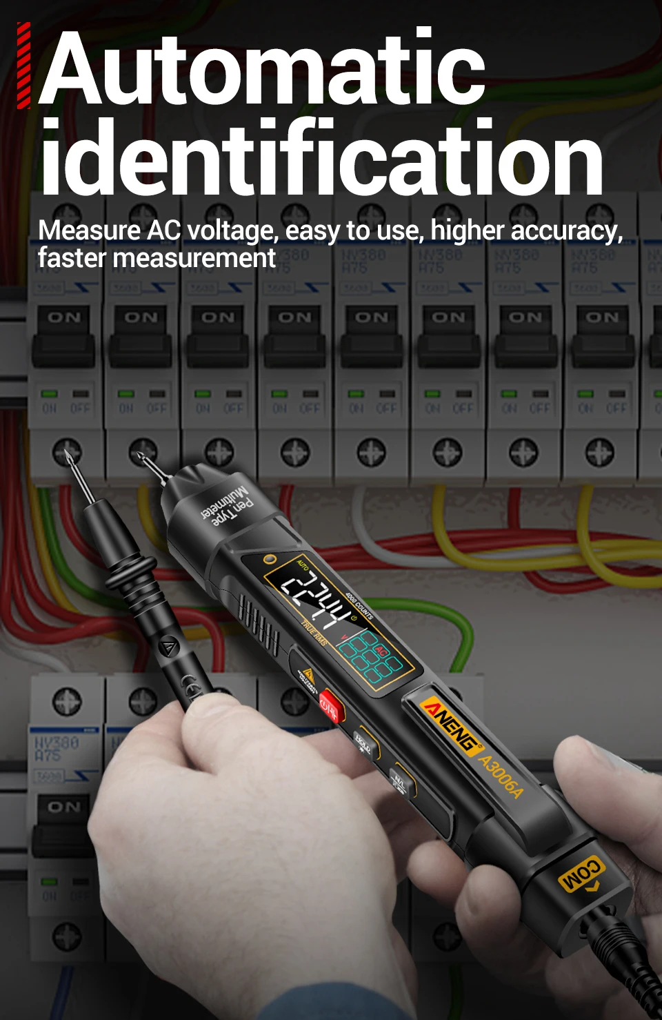 ANENG A3006AMultímetro probador de voltaje 4000 cuentas multitester NCV prueba de diodo ohmer condensador Zero Firewire Hz instrumentos herramientas