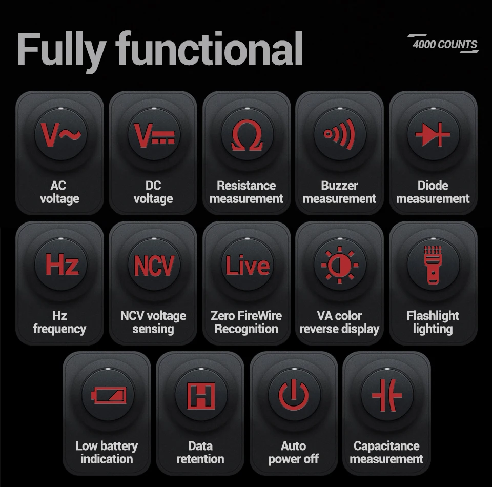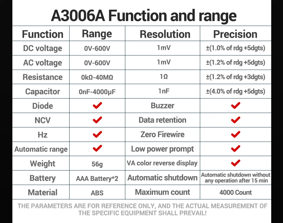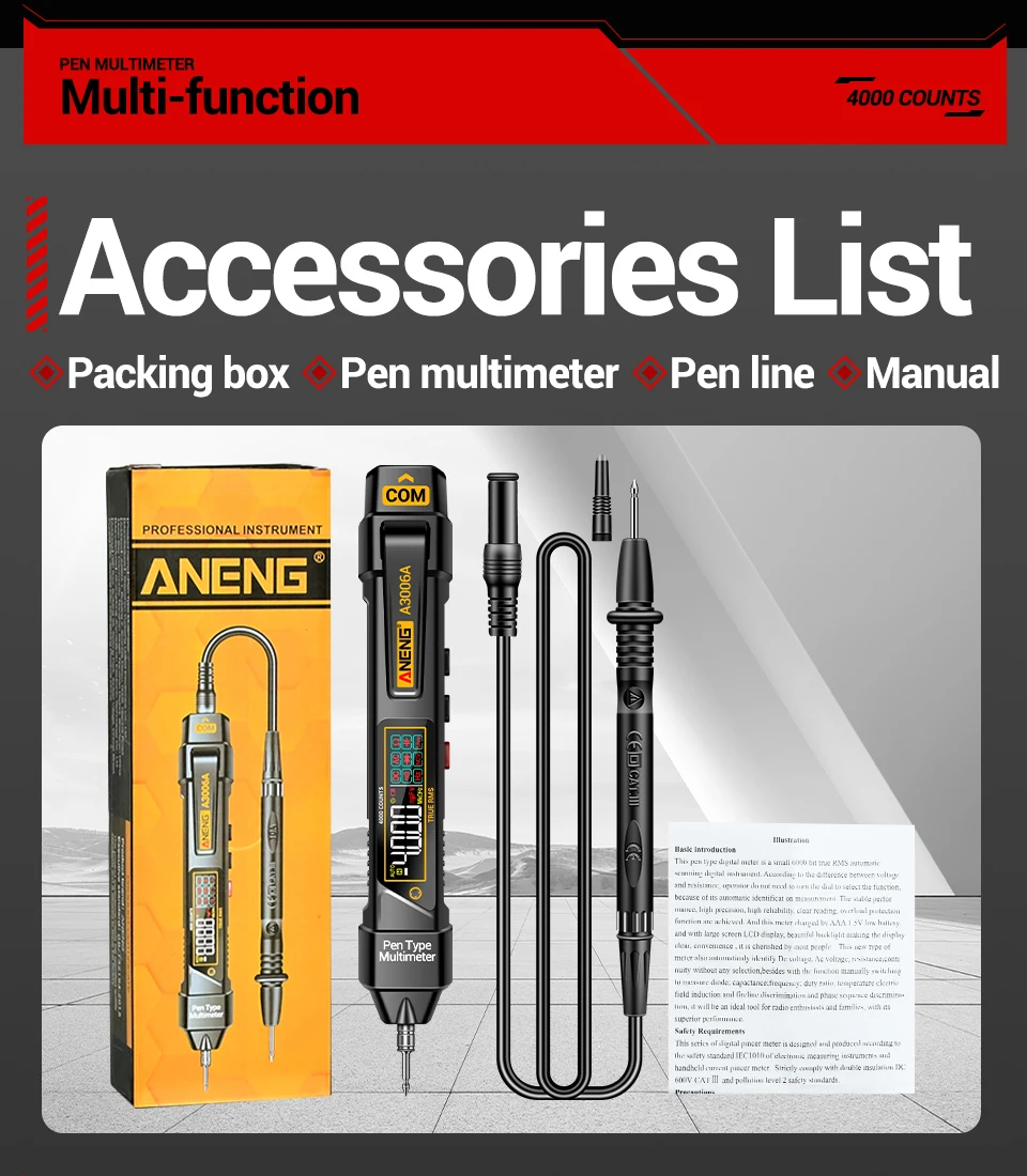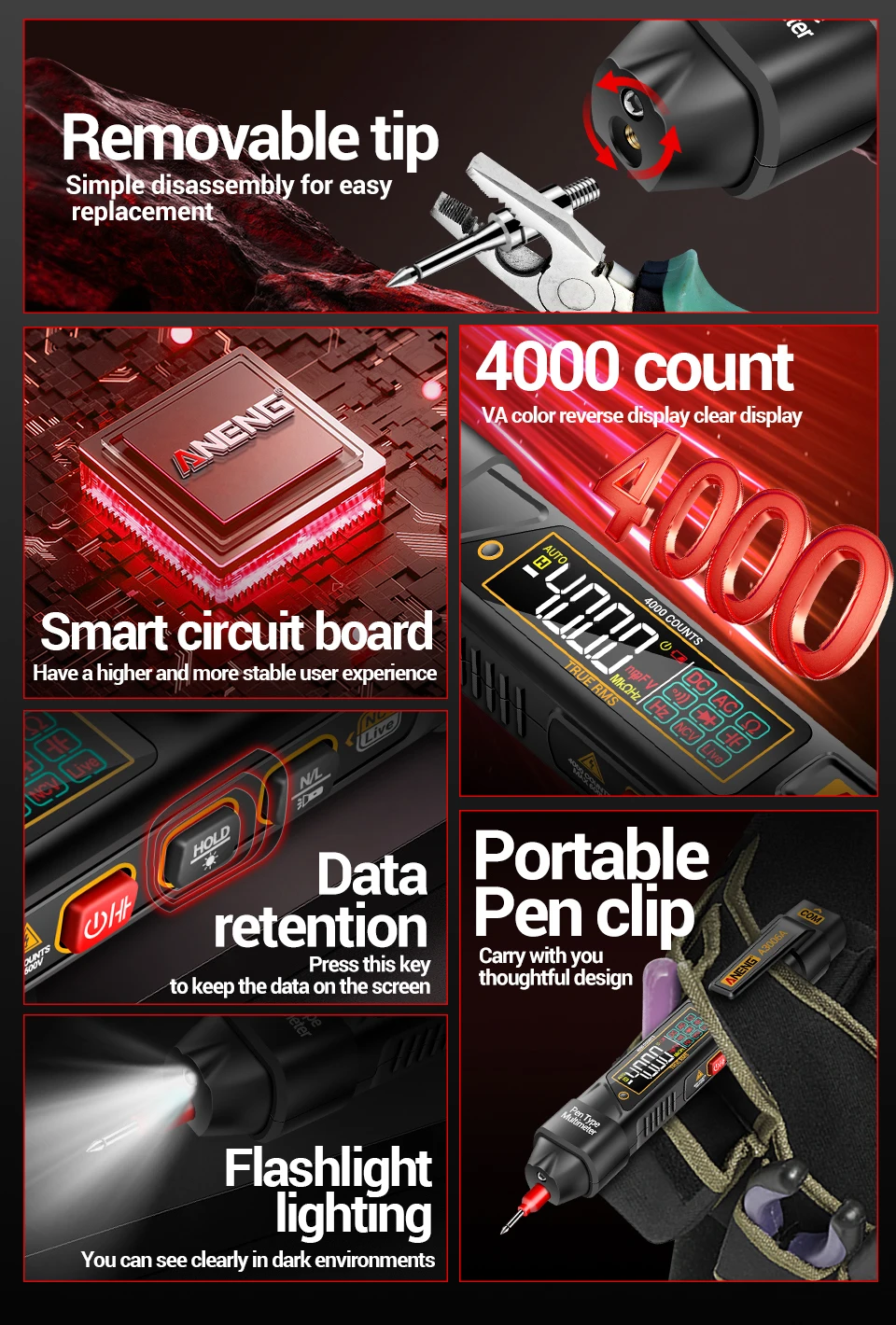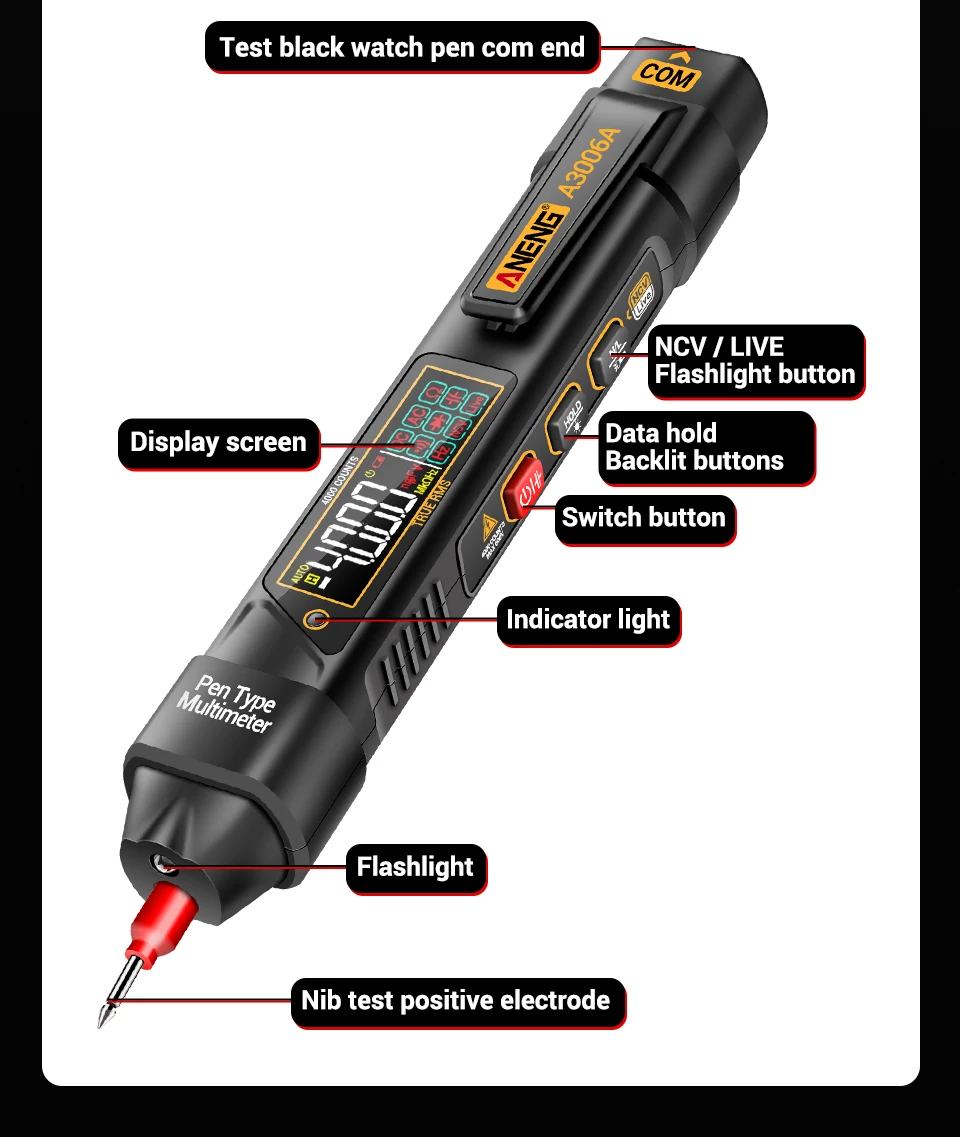 ANENG A3006AMultímetro probador de voltaje 4000 cuentas multitester NCV prueba de diodo ohmer condensador Zero Firewire Hz instrumentos herramientas