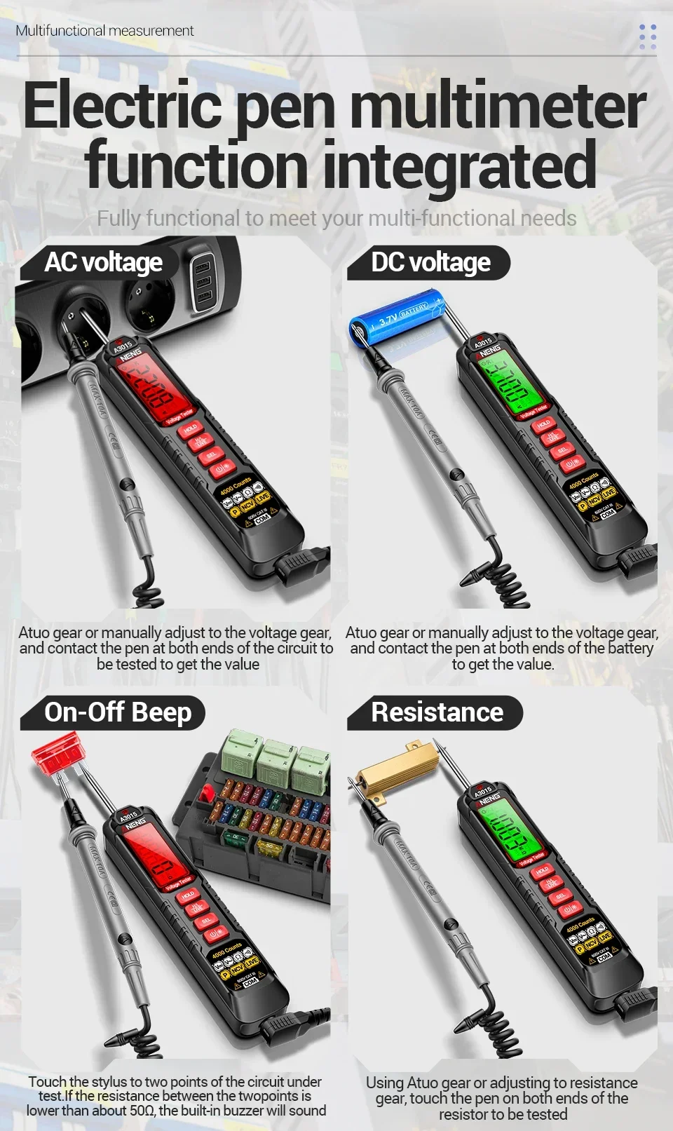 ¡Los PARÁMETROS SON SÓLO PARA REFERENCIA Y LA MEDIDA REAL DEL PREVAIL DE LOS EQUIPOS ESPECÍFICOS!Lista de embalaje:Caja de embalaje * 1Manual de instrucciones * 1Multímetro * 1Línea de bolígrafos de prueba de resorte* 1Clip de resorte * 1Destornillador Philips * 1