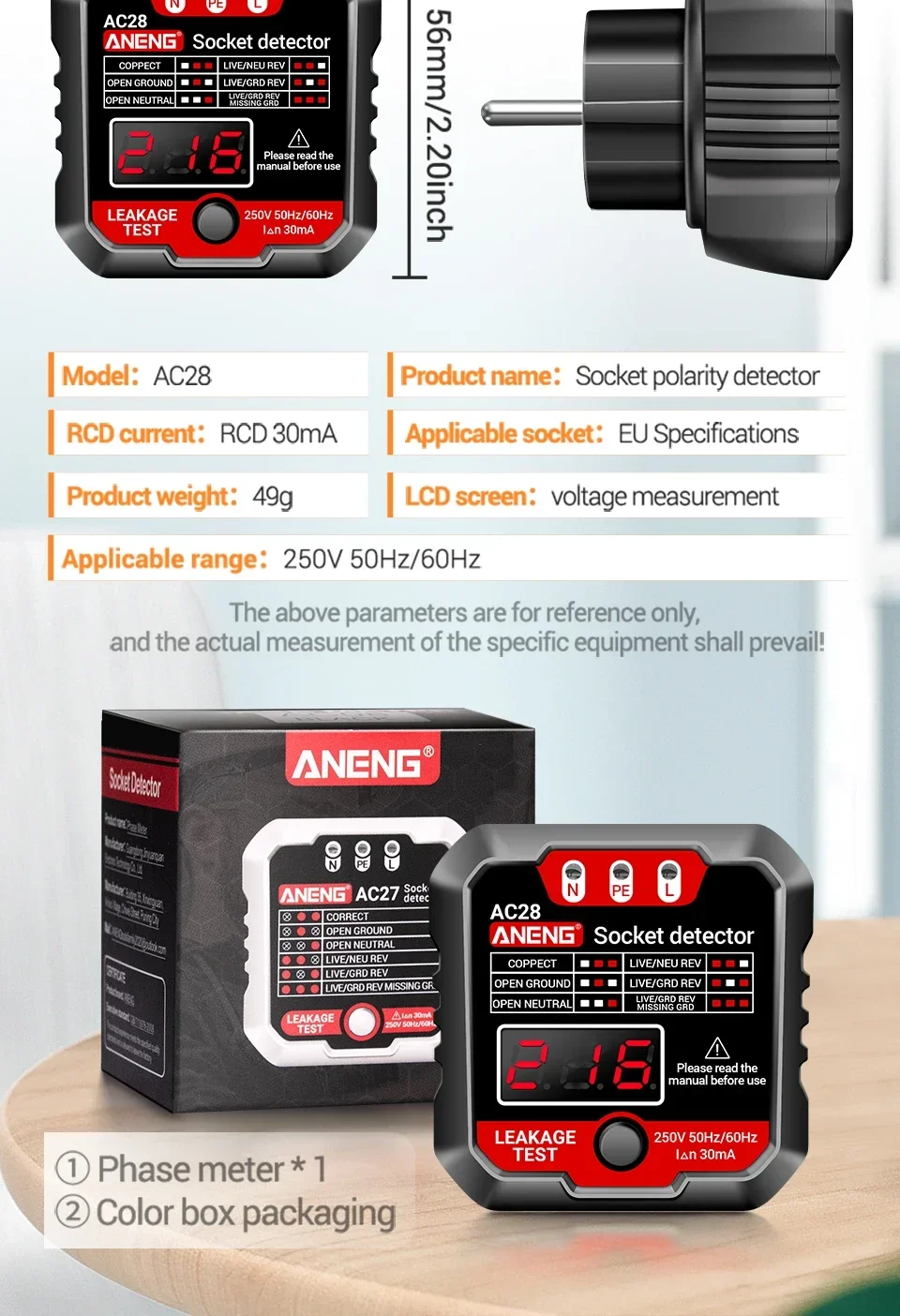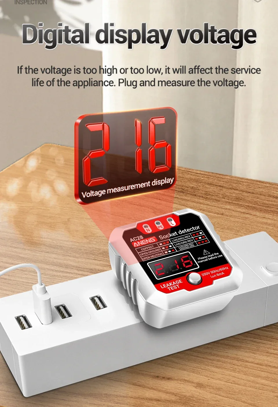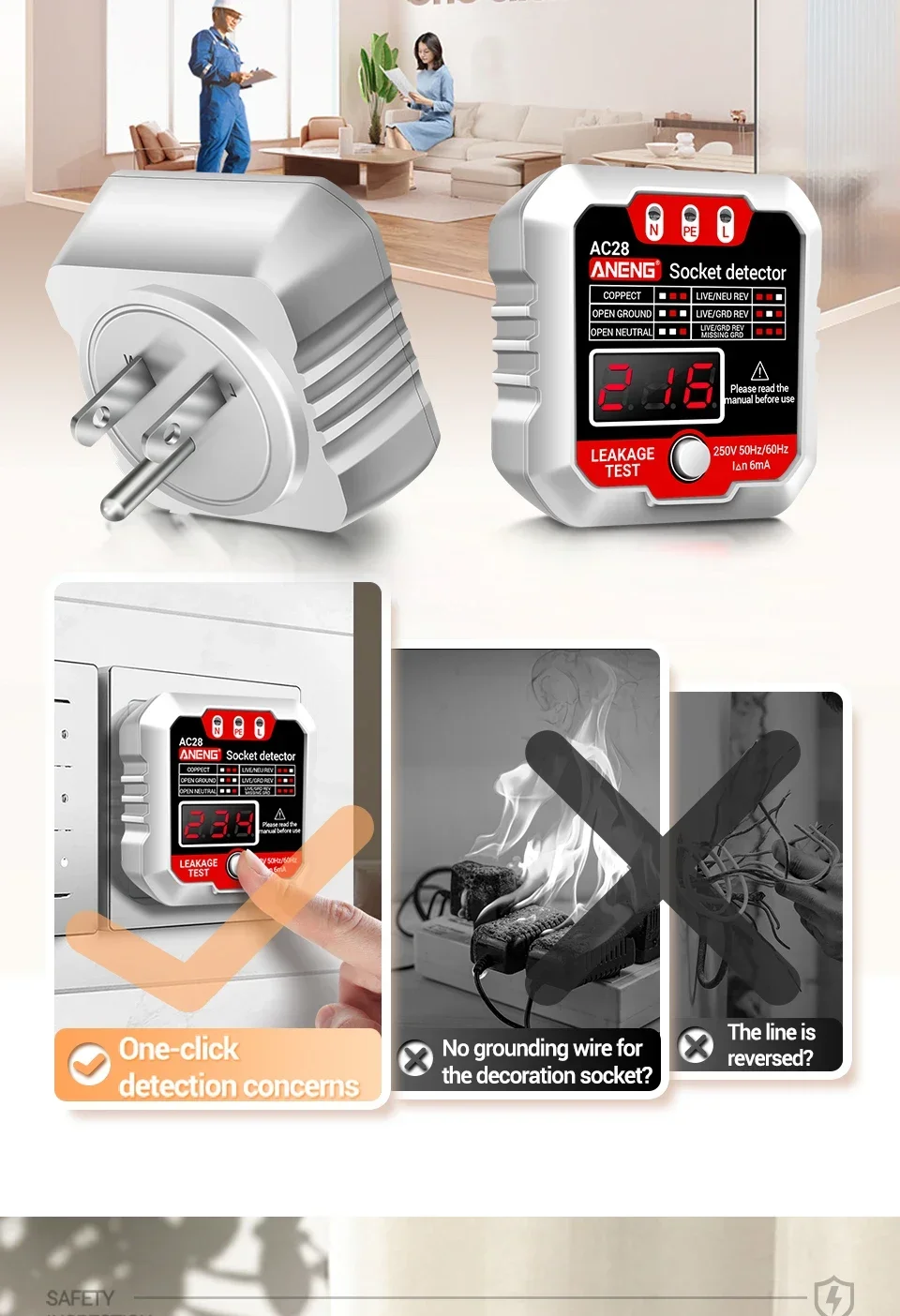 Probador de enchufe inteligente AC28