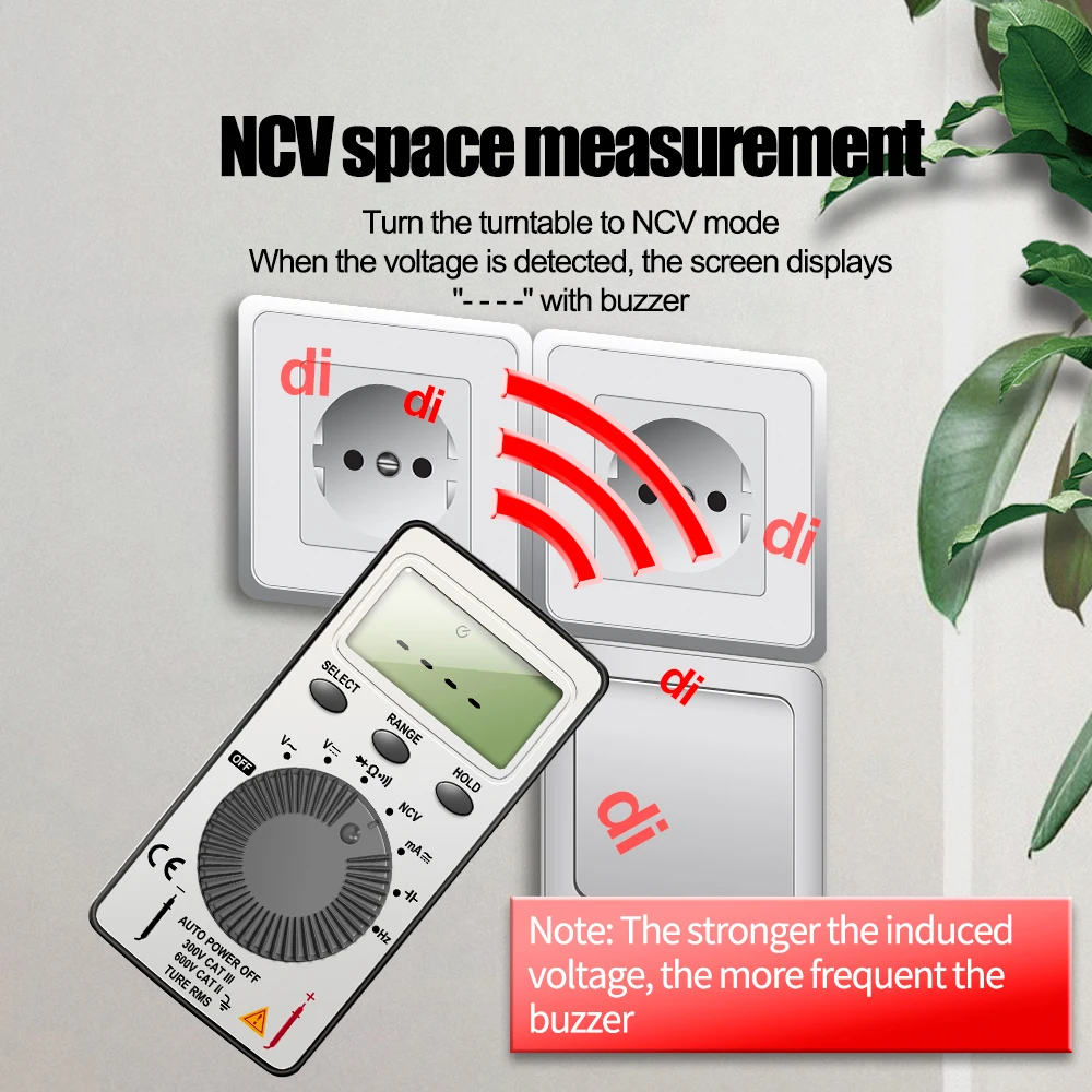 4. Non contact power induction: When AC voltage is detected, the screen displays EF and emits an alarm beep sound to prompt