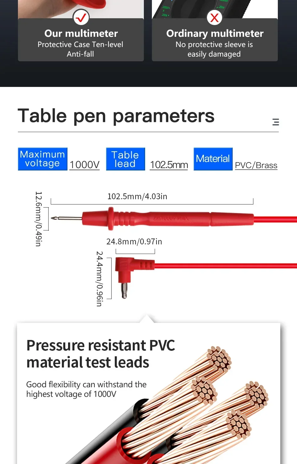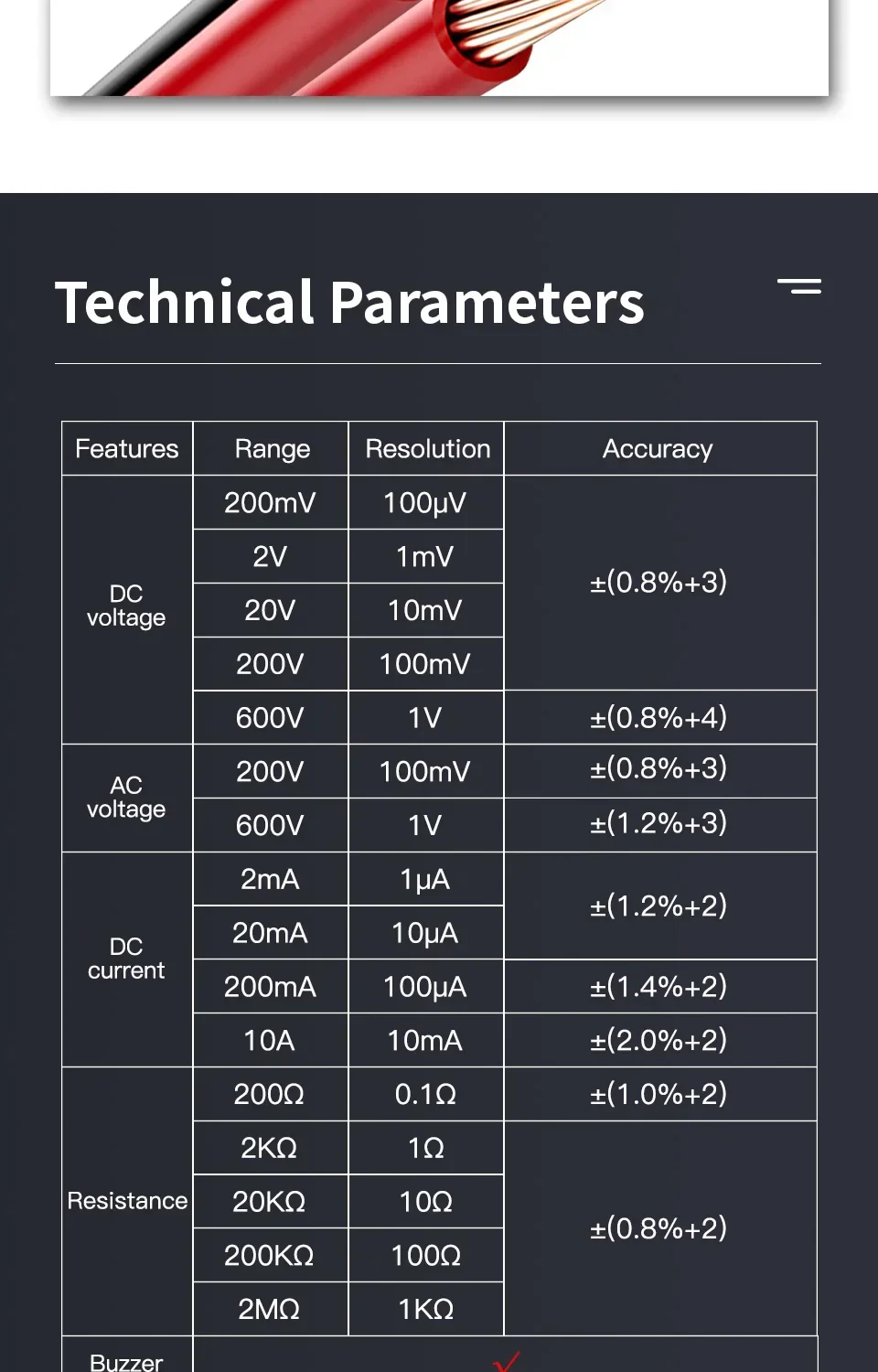 La calidad de las puntas es terrible. Dan medidas erroneas por la mala calidad que tienen. El aparato en sí es muy básico para uso sencillo y funciona correctamente. El pitido de continuidad tiene demasiado retardo.