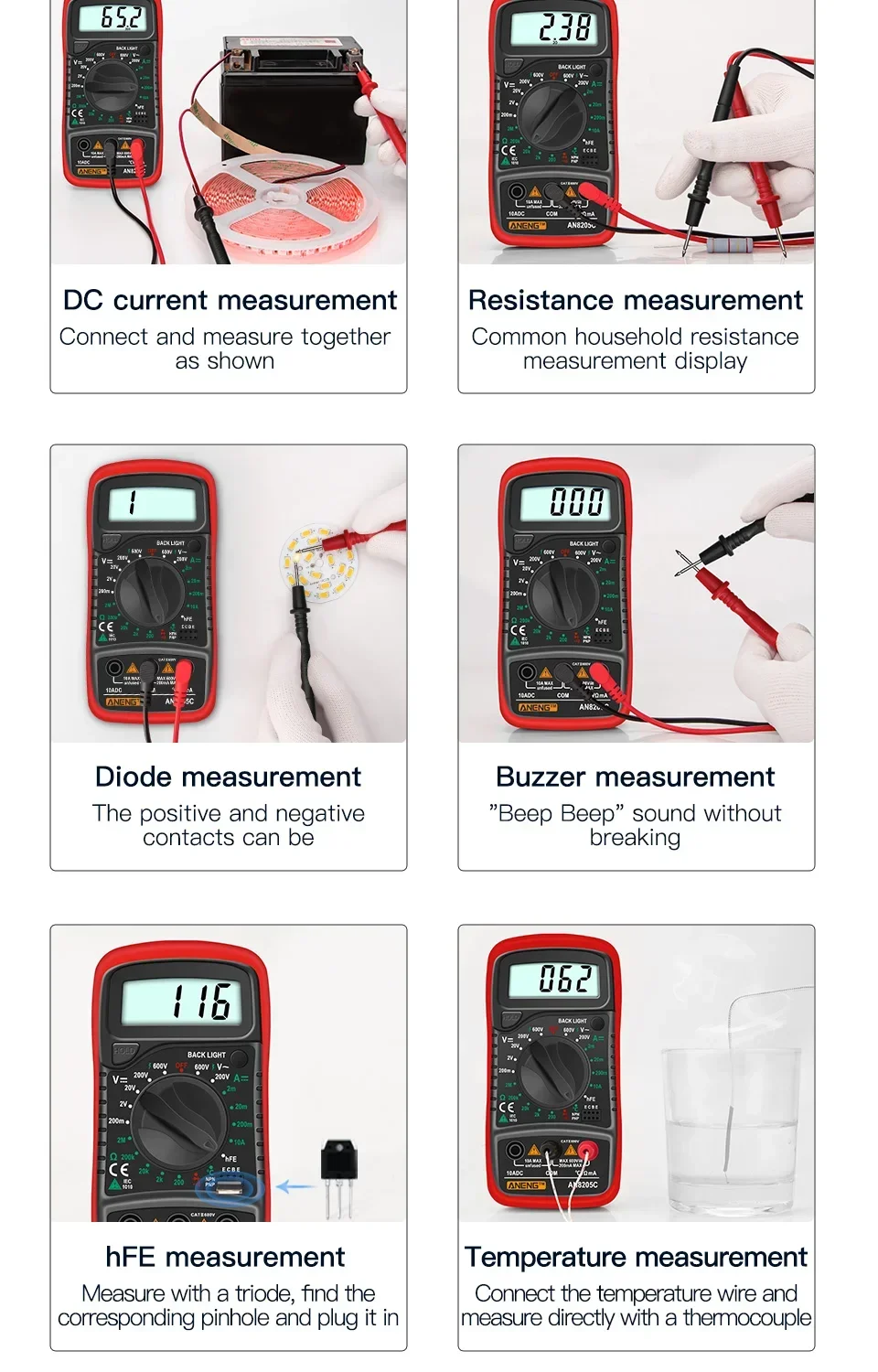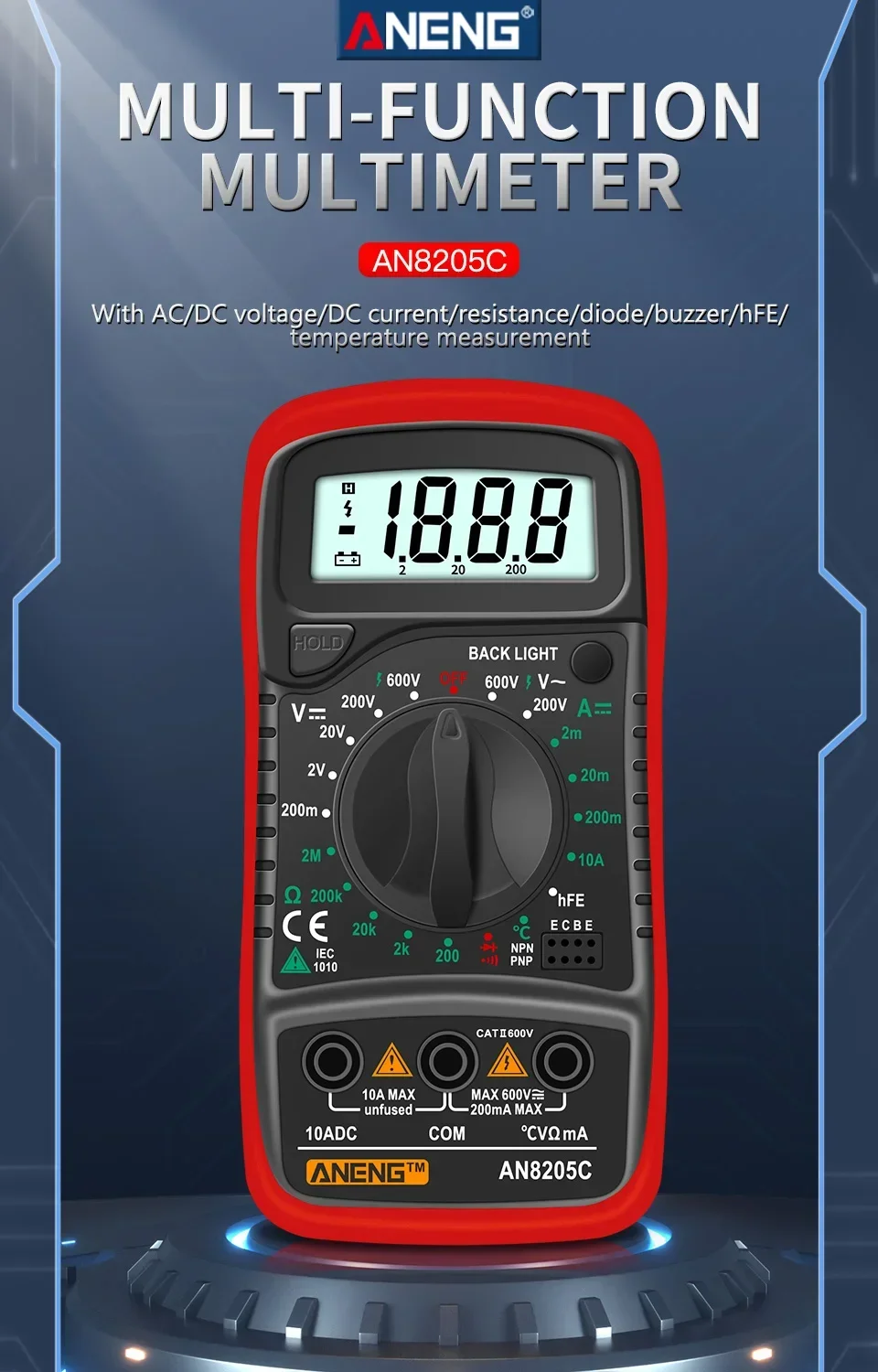 ANENG AN8205C multímetro Digital 1999 contador amperímetro multímetro pantalla LCD probador hFE AC DC herramienta de termopar de prueba de voltaje