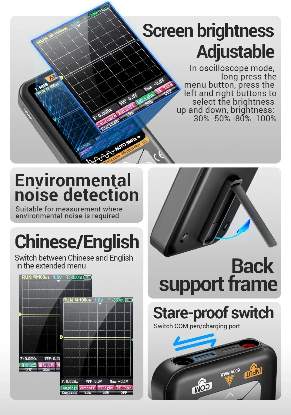Frecuencia, pico a pico como máximo, raíz media cuadrada, ciclo de trabajo