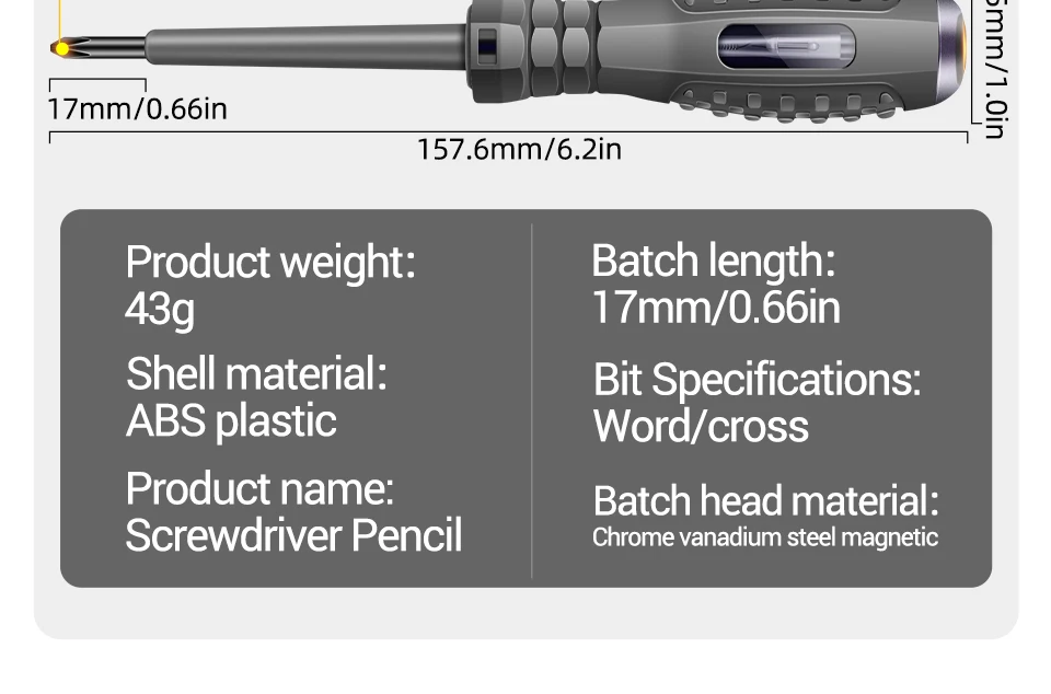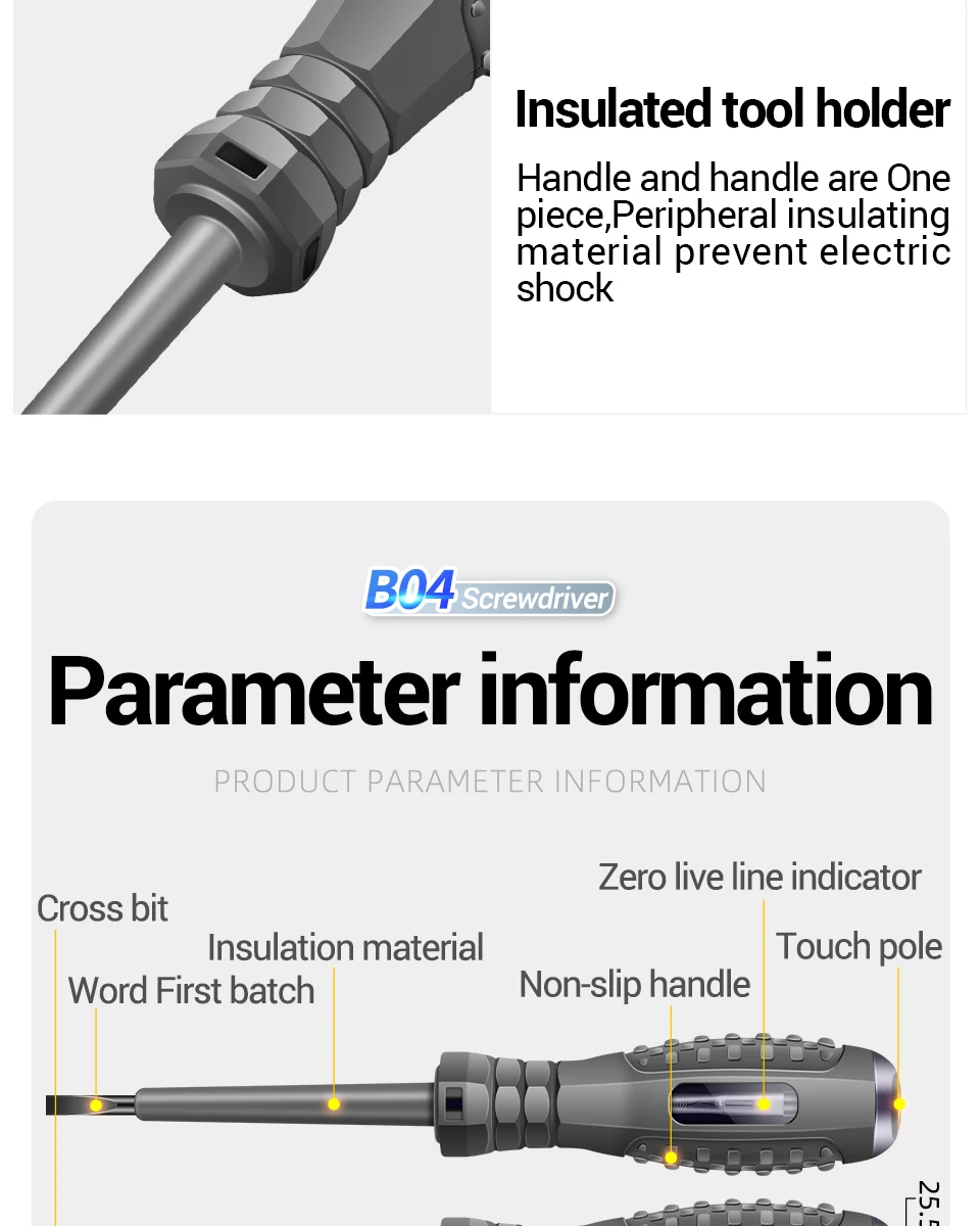5.Embalaje:1 * bolígrafo de prueba de destornillador B04 (Sin batería