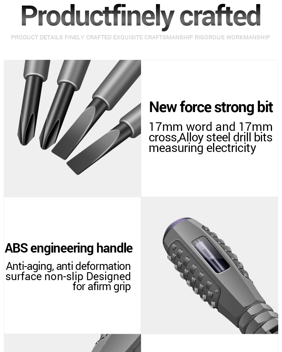 Está bien fabricado, creo que debería funcionar bien para ambos usos, es decir, como buscador de fases y destornillador.