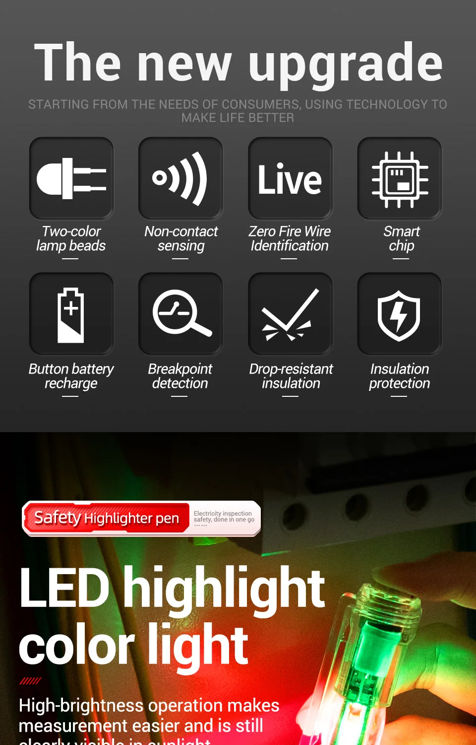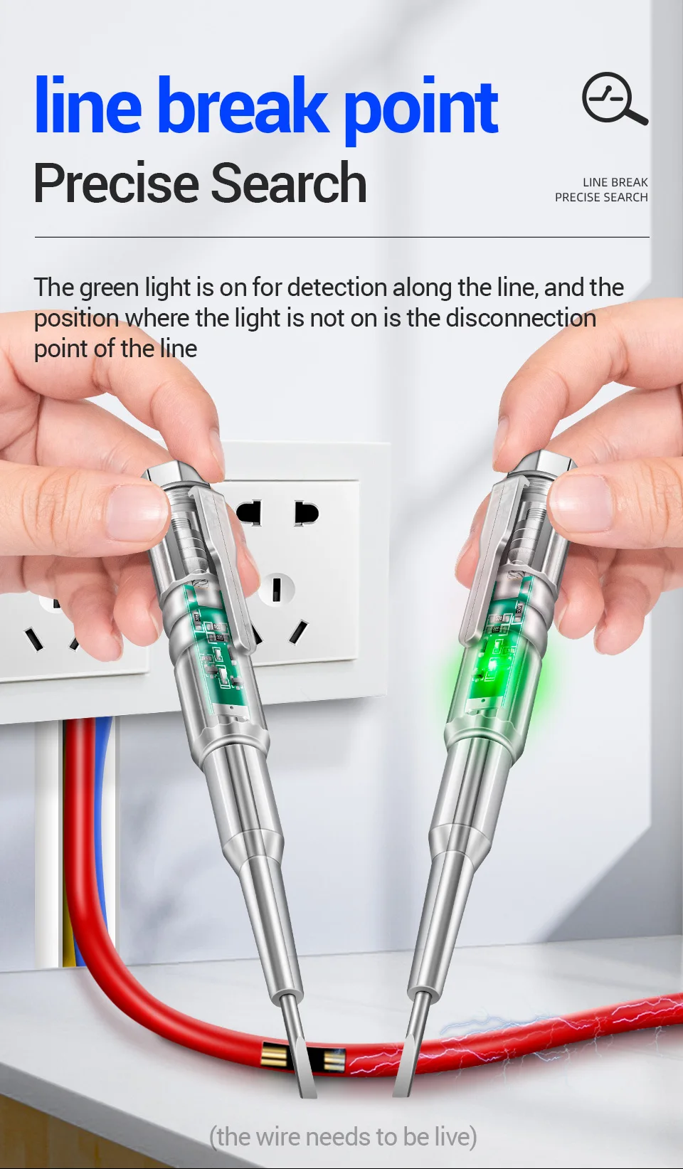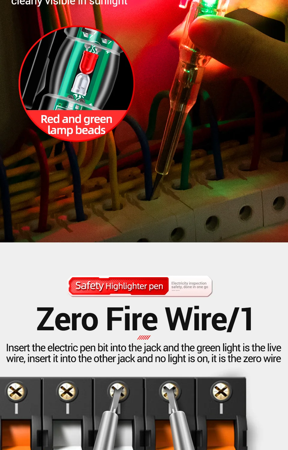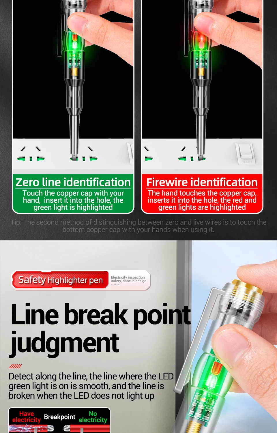 1.Determinación de cable vivo cero: inserte el taladro lápiz en el gato y la indicación verde será con cable; Inserte otro jack, línea cero si no hay indicación.