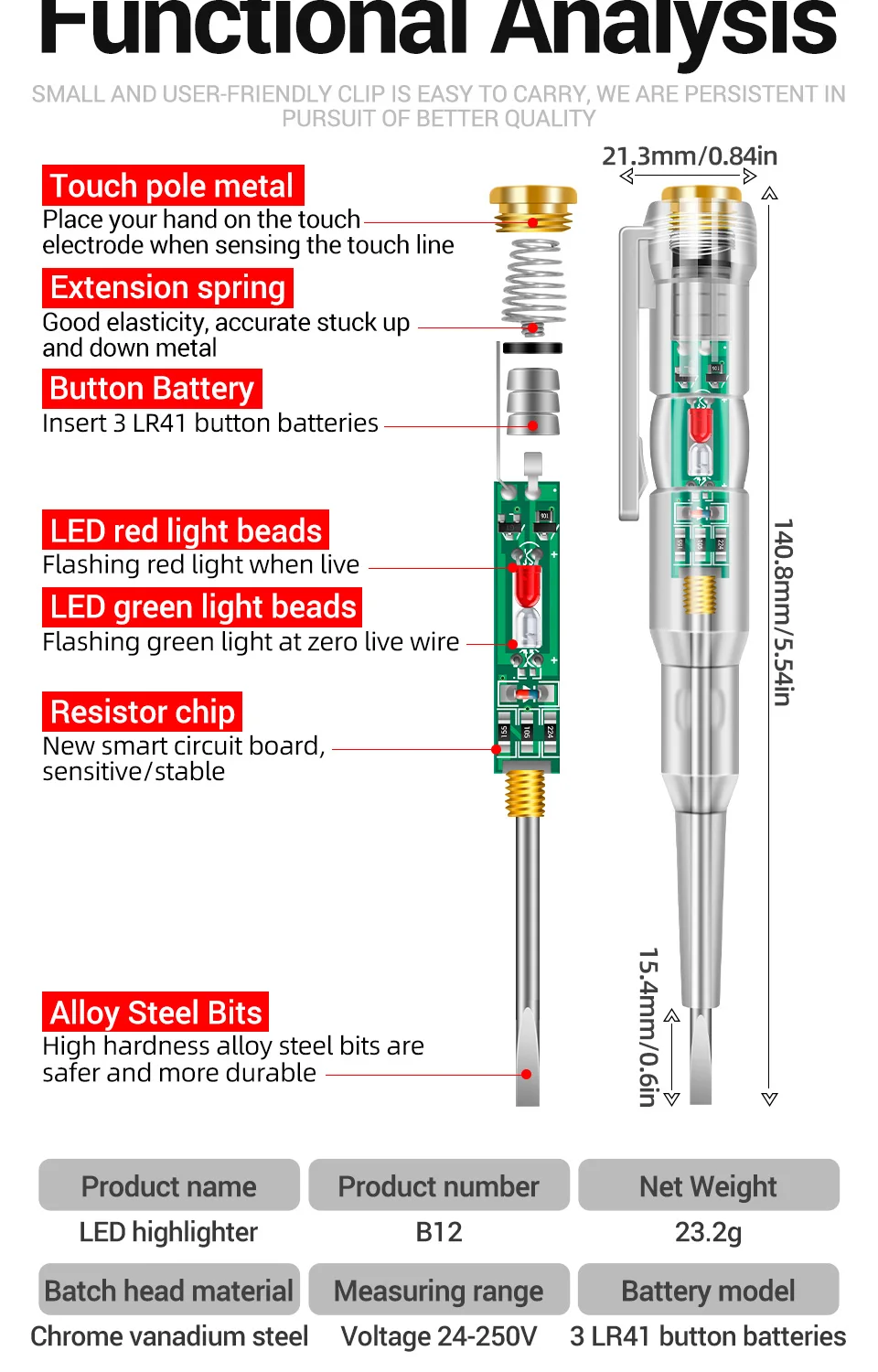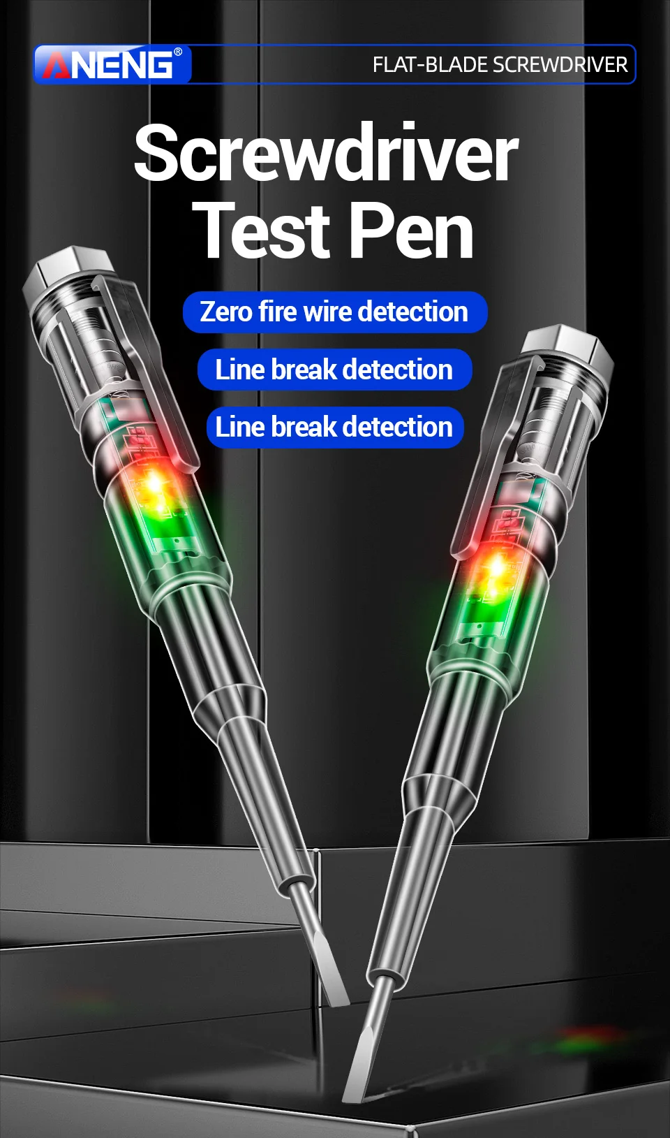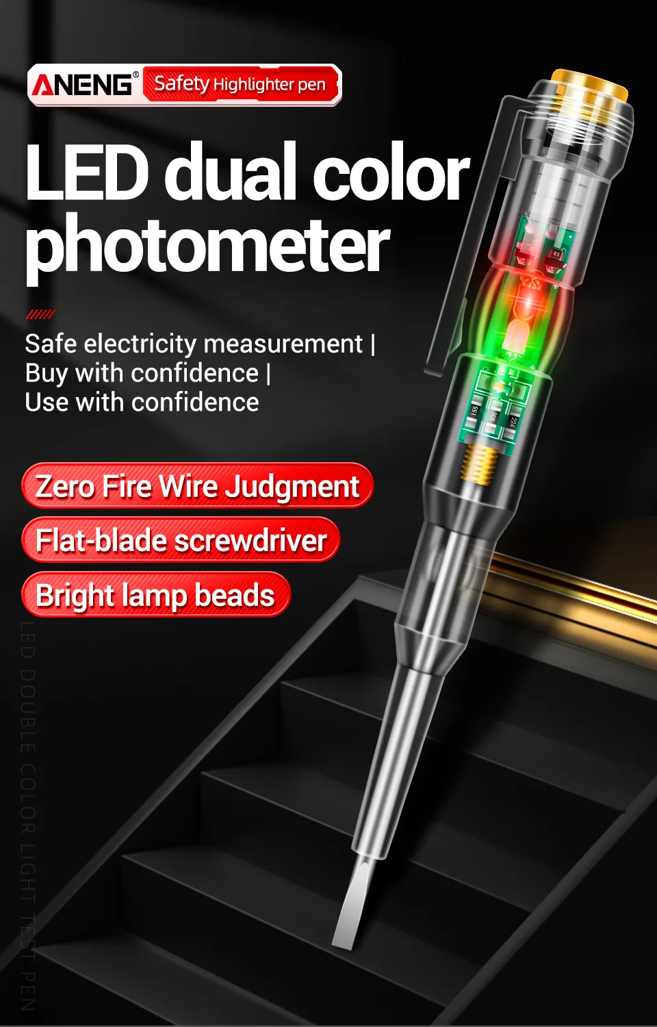 ANENG B12 Destornillador de hoja plana LED Fotómetro de doble color Detección de cable vivo cero Rojo y verde Doble lámpara brillante cuentas hogar