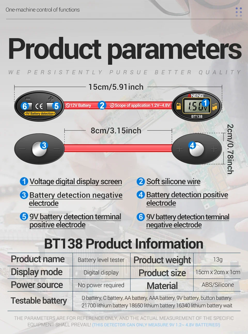 2.El detector funciona con una batería de medición y no requiere instalación adicional de batería.