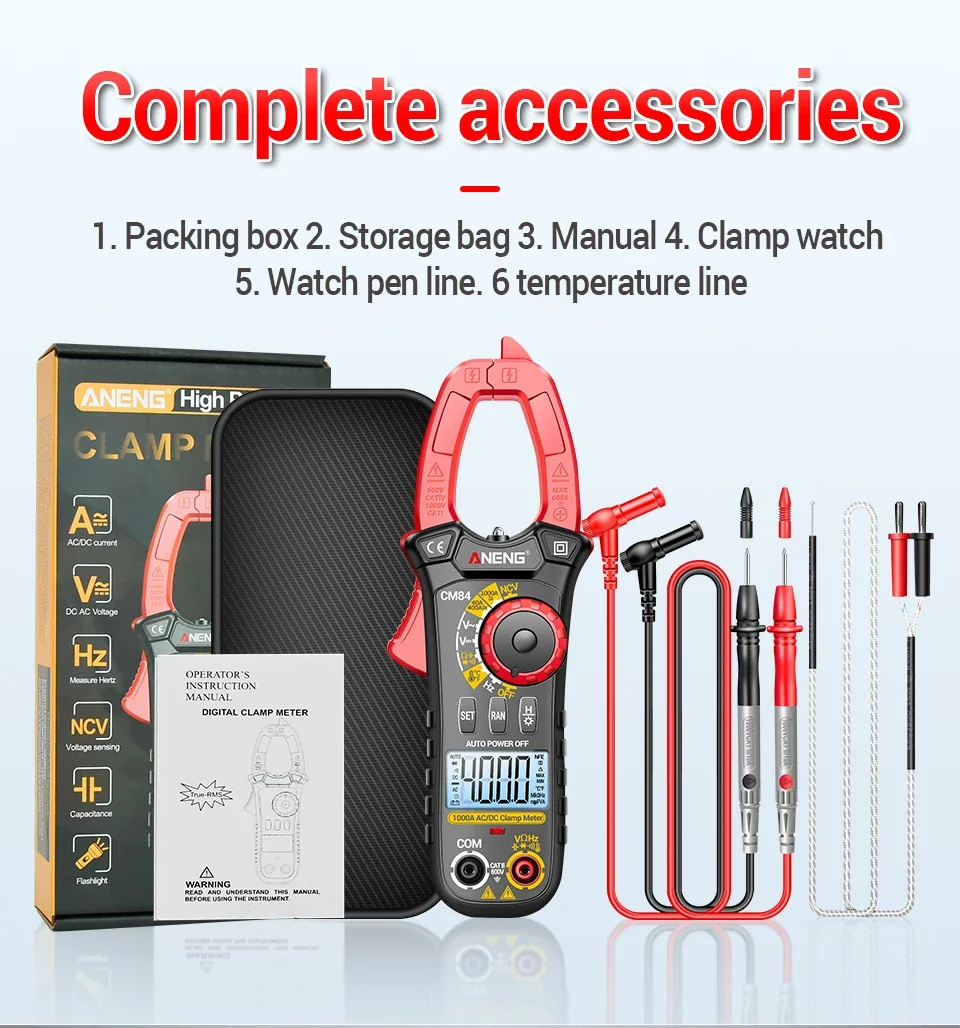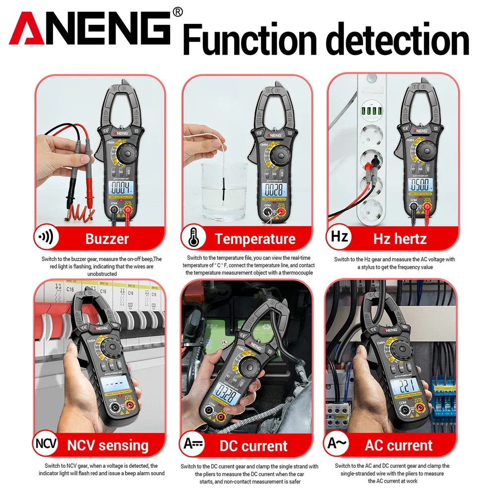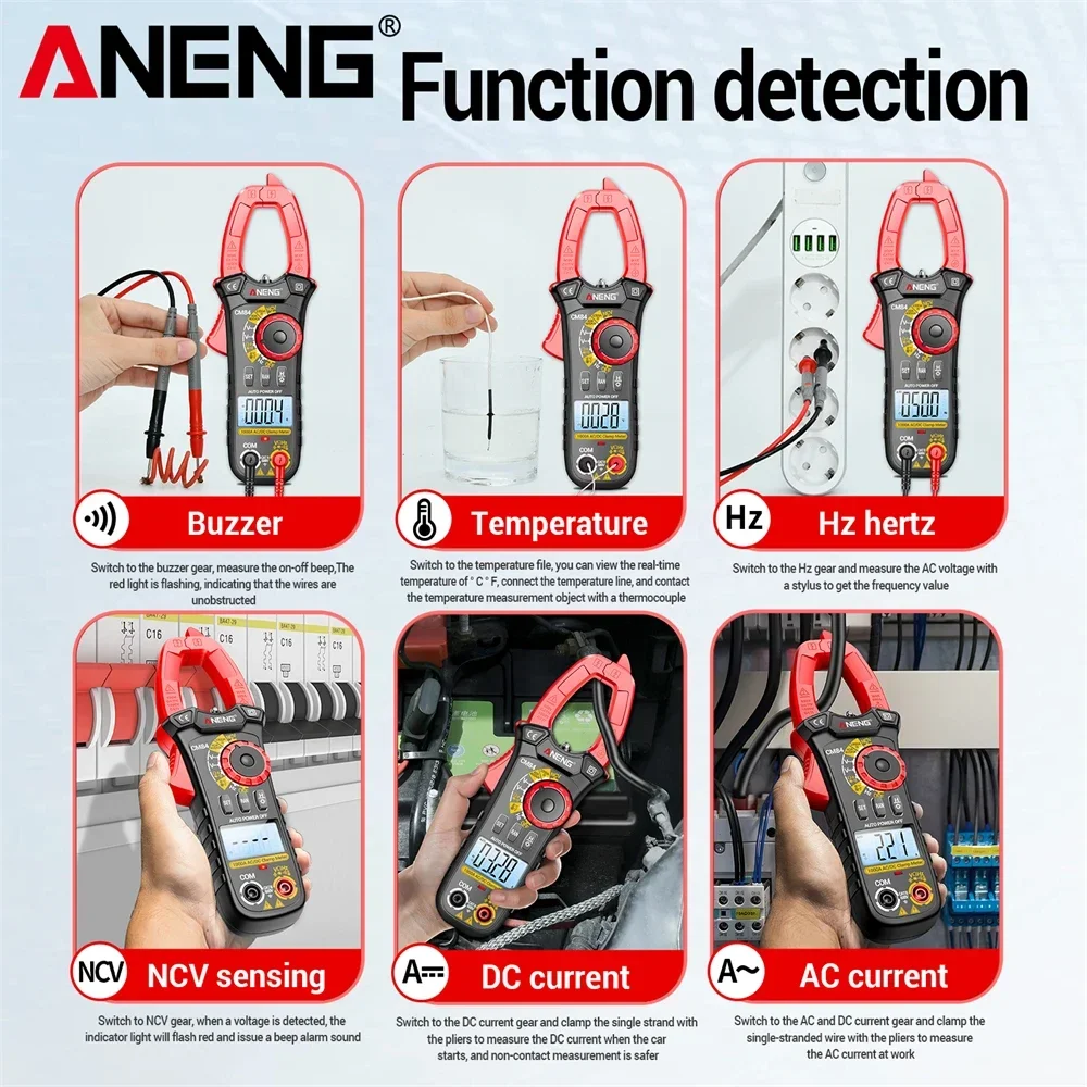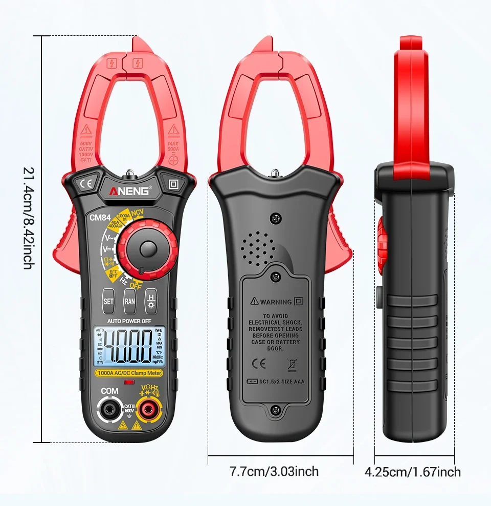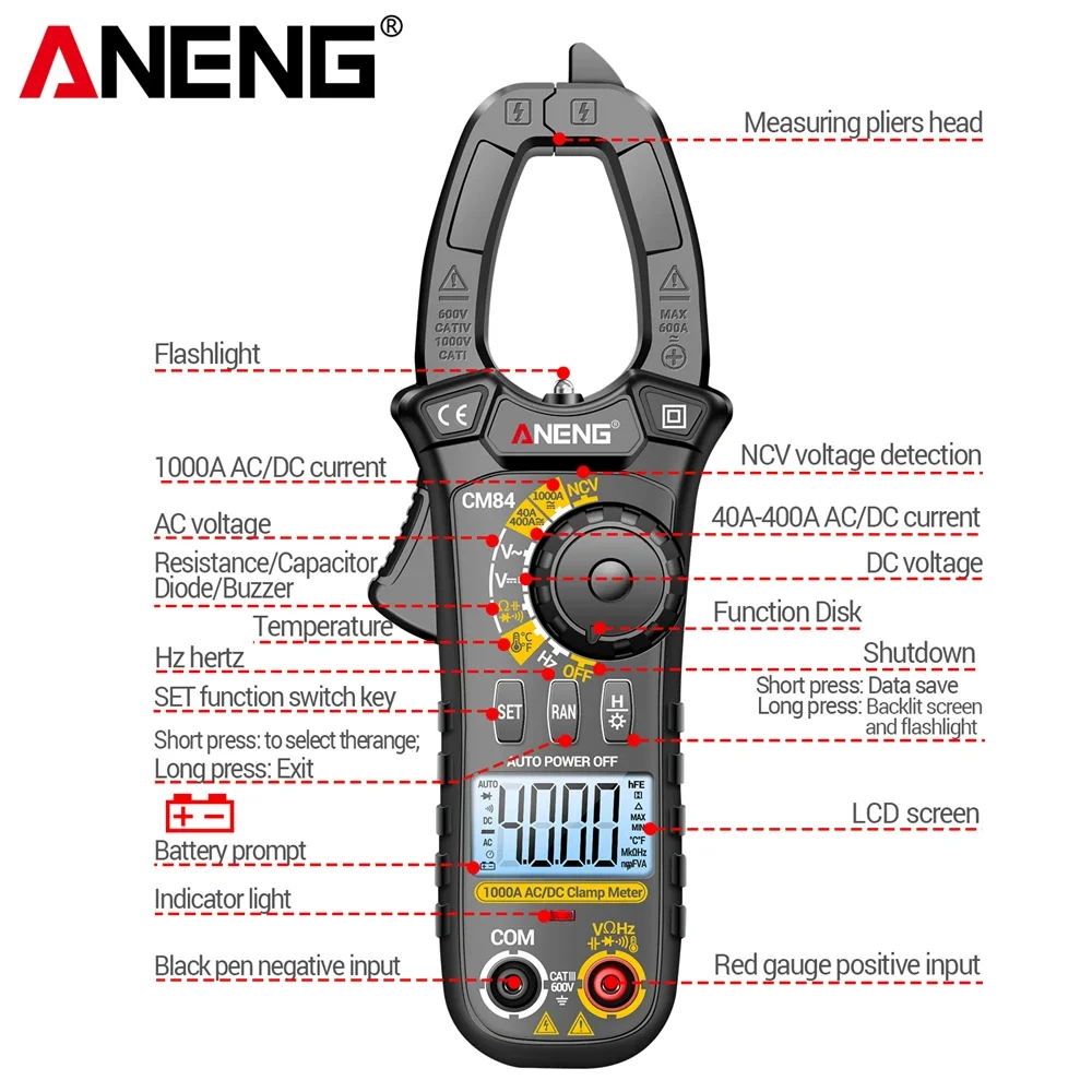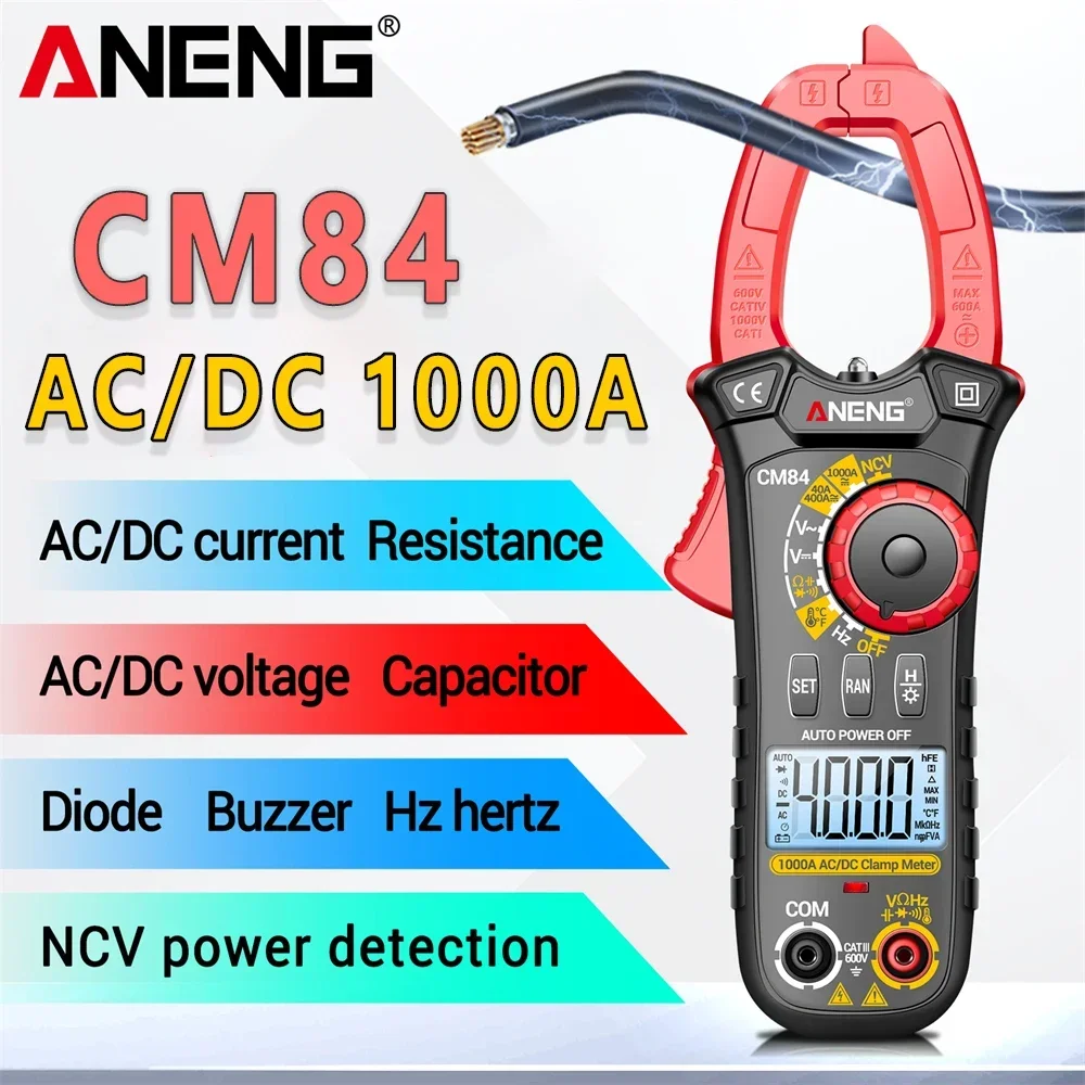 Comprar ANENG CM84 medidor de pinza 4000 recuentos multímetro de voltaje de corriente CC/CA sin contacto alta precisión NCV detección Hertz Ohm herramientas de prueba