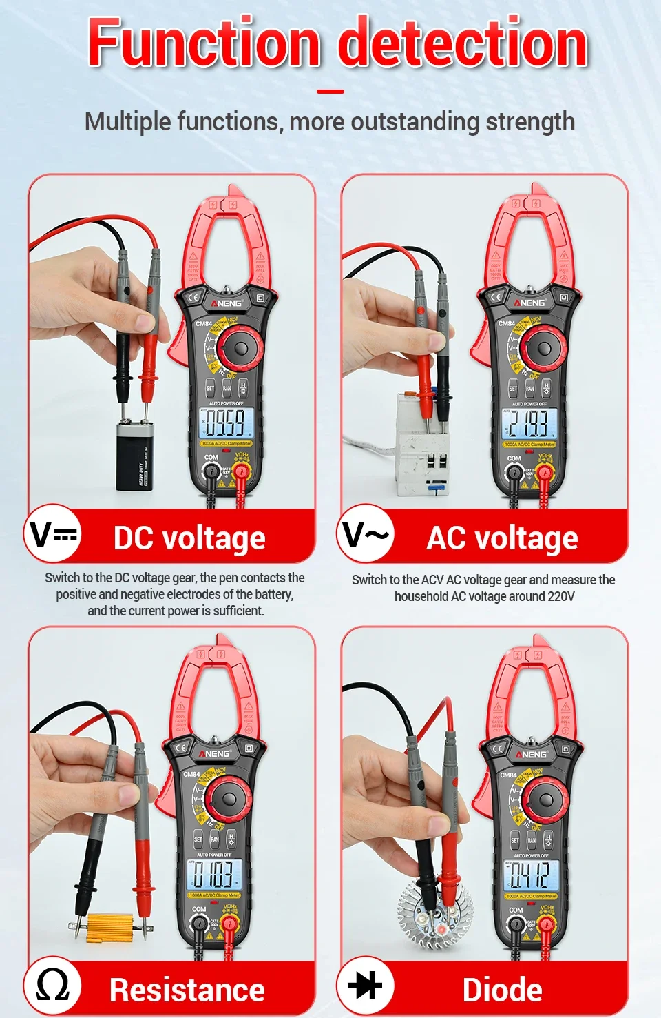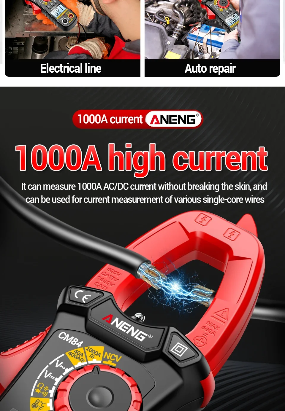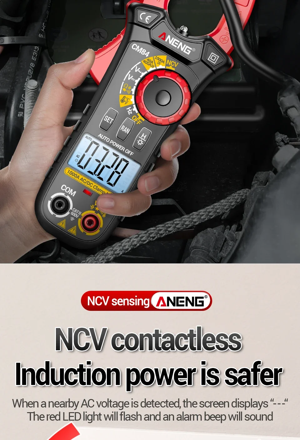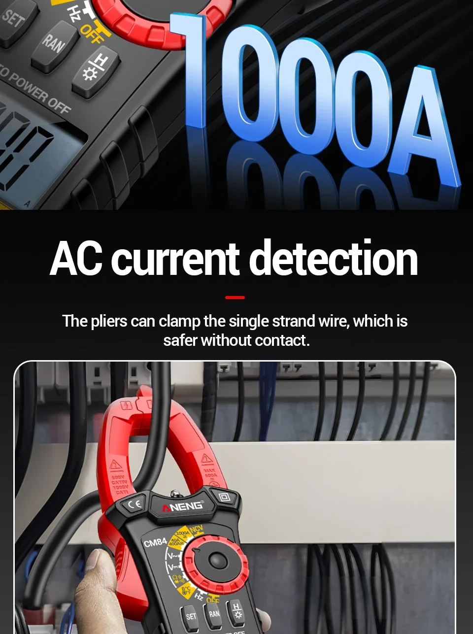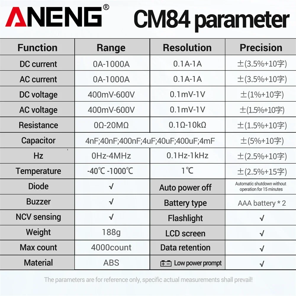 Comprar ANENG CM84 medidor de pinza 4000 recuentos multímetro de voltaje de corriente CC/CA sin contacto alta precisión NCV detección Hertz Ohm herramientas de prueba