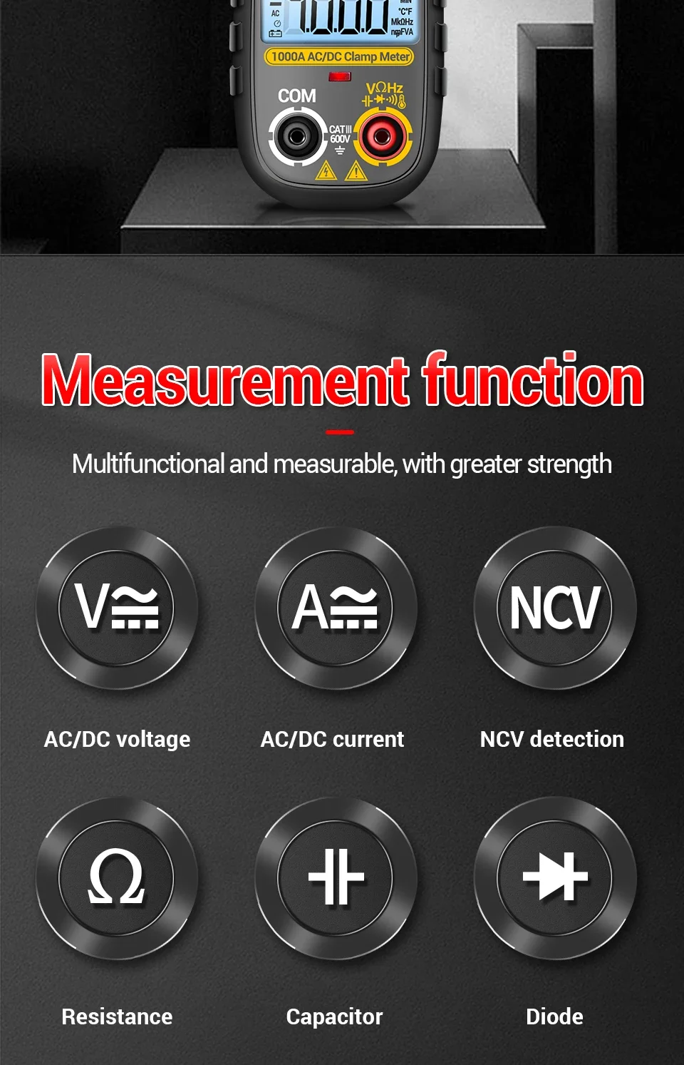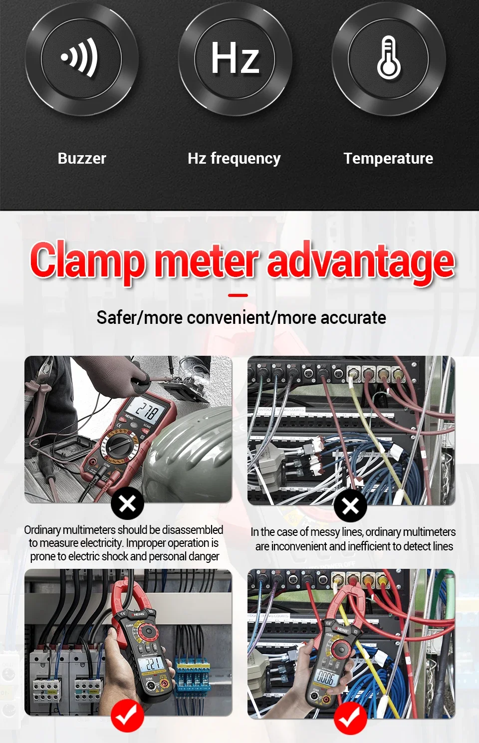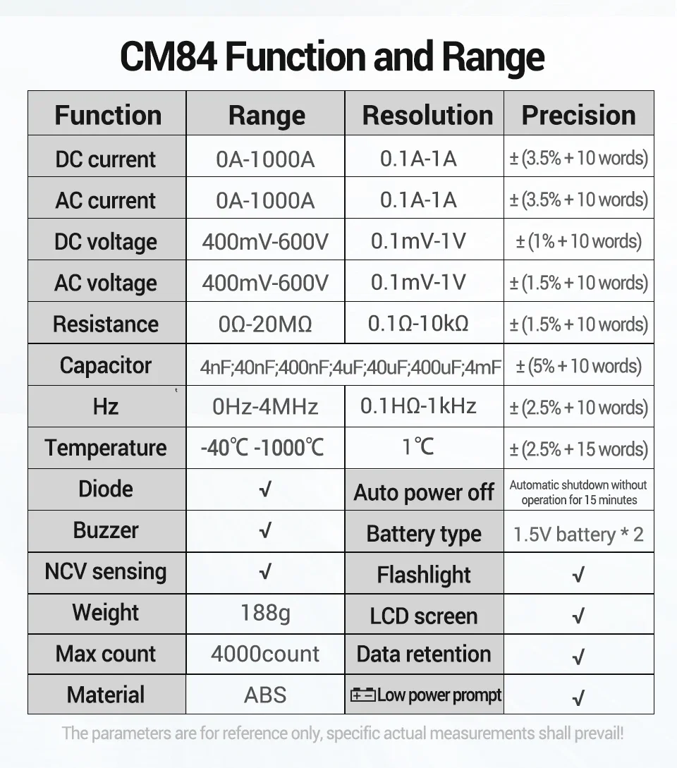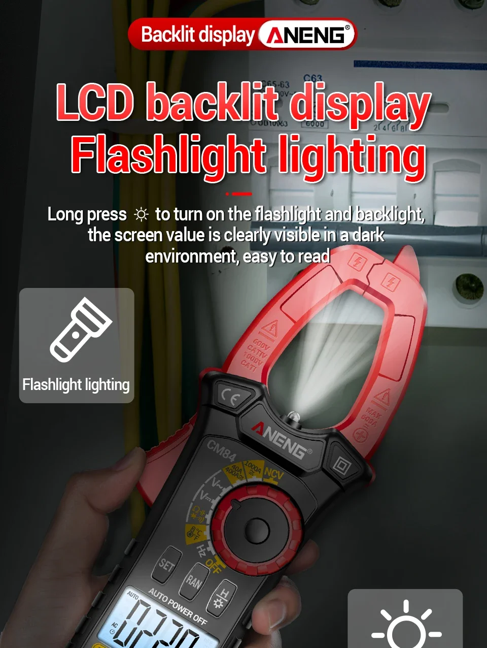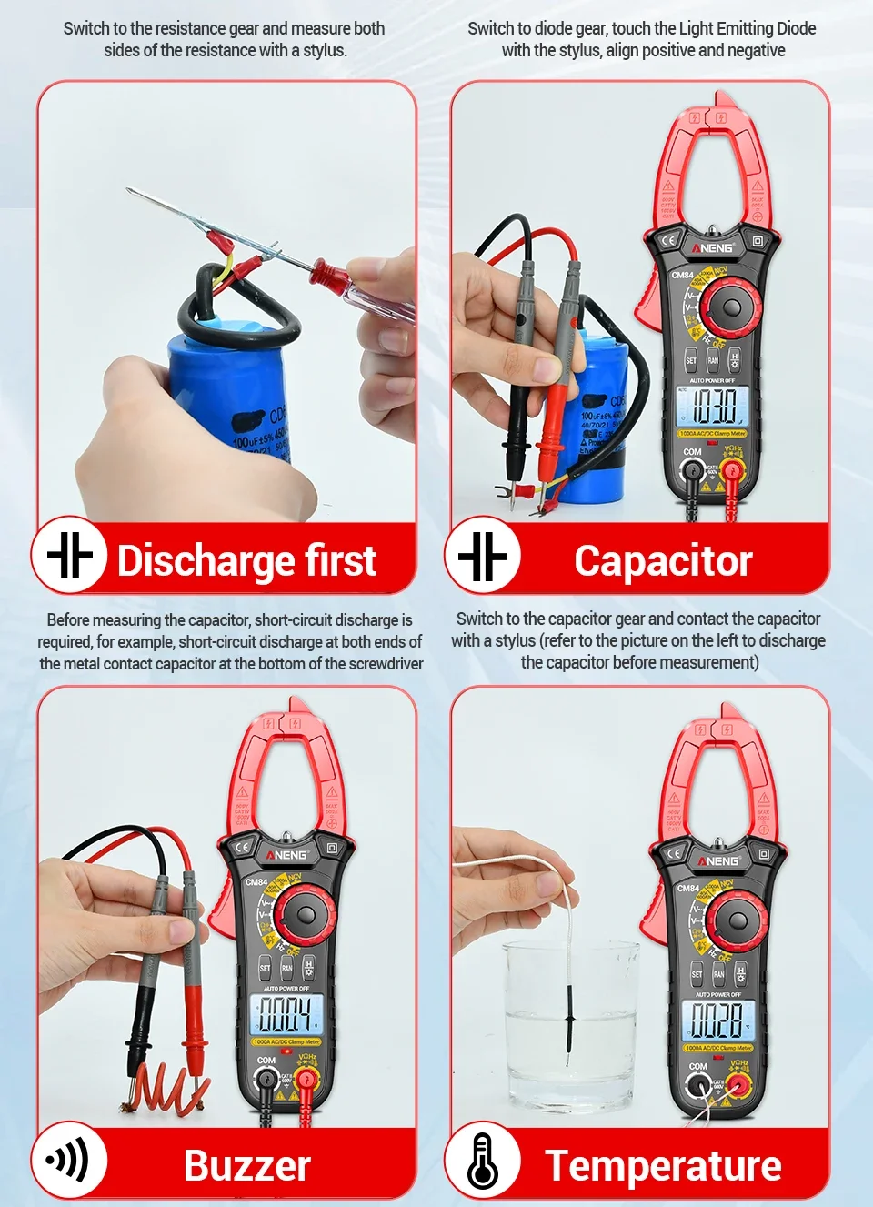 Comprar ANENG CM84 medidor de pinza 4000 recuentos multímetro de voltaje de corriente CC/CA sin contacto alta precisión NCV detección Hertz Ohm herramientas de prueba