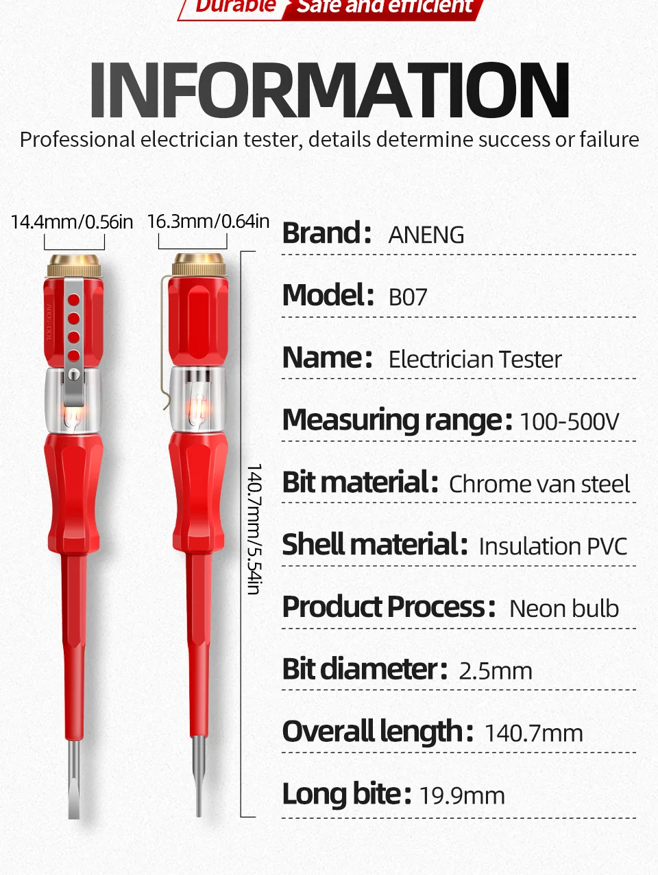 B07 Destornillador de prueba de electricista