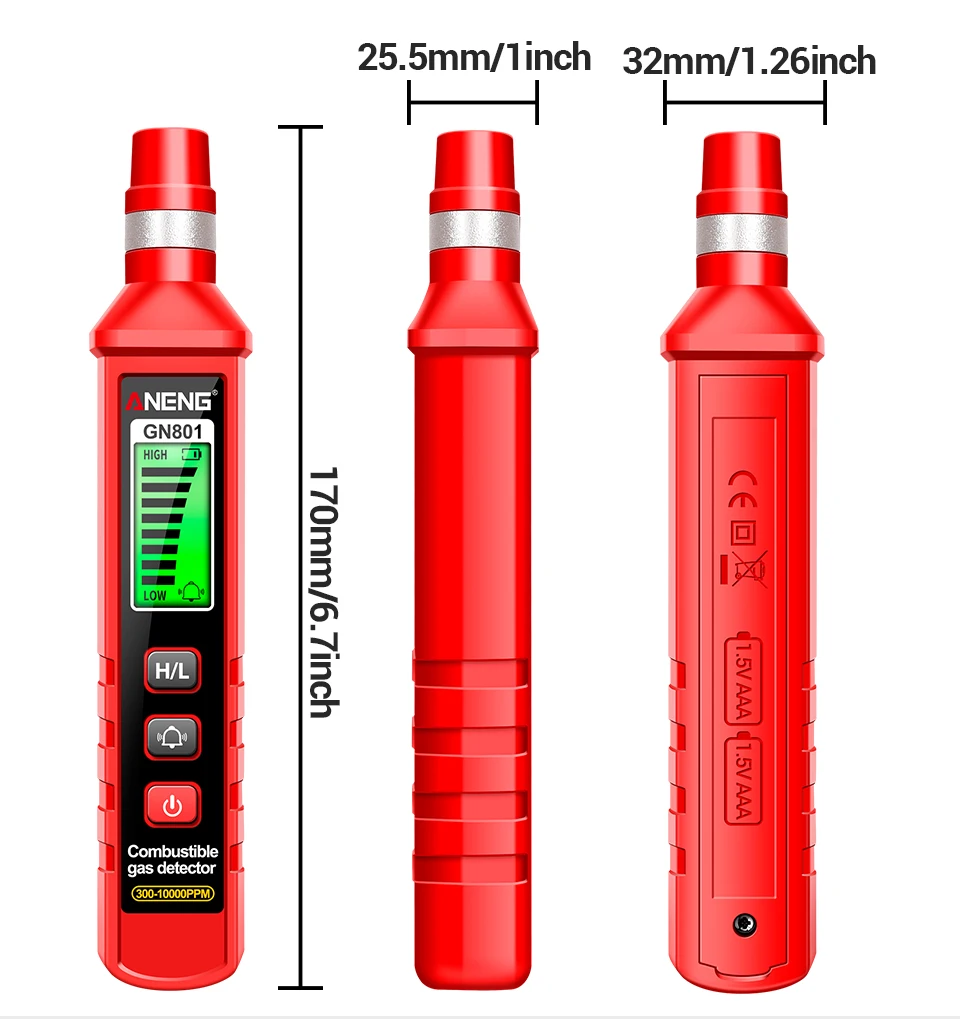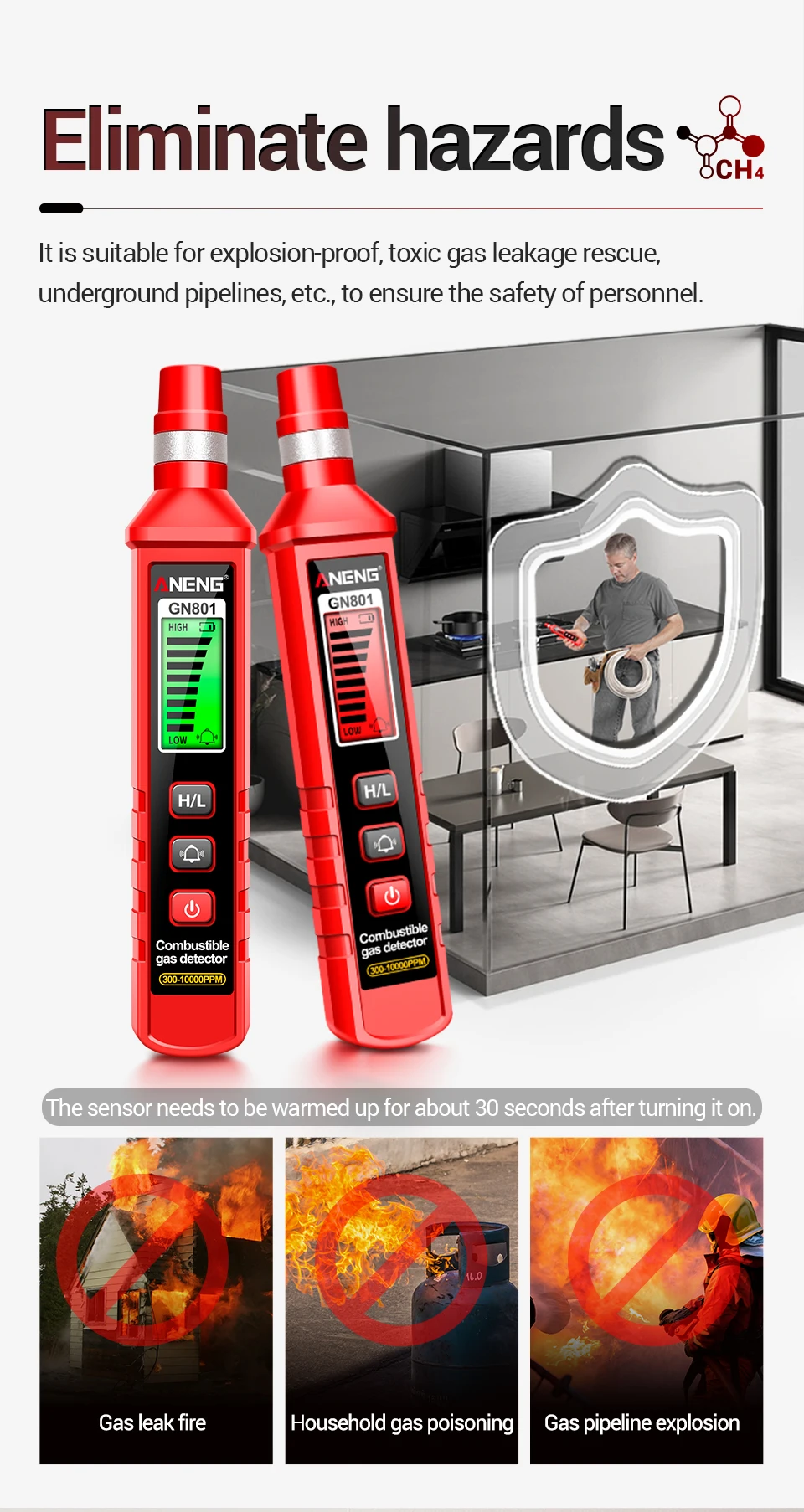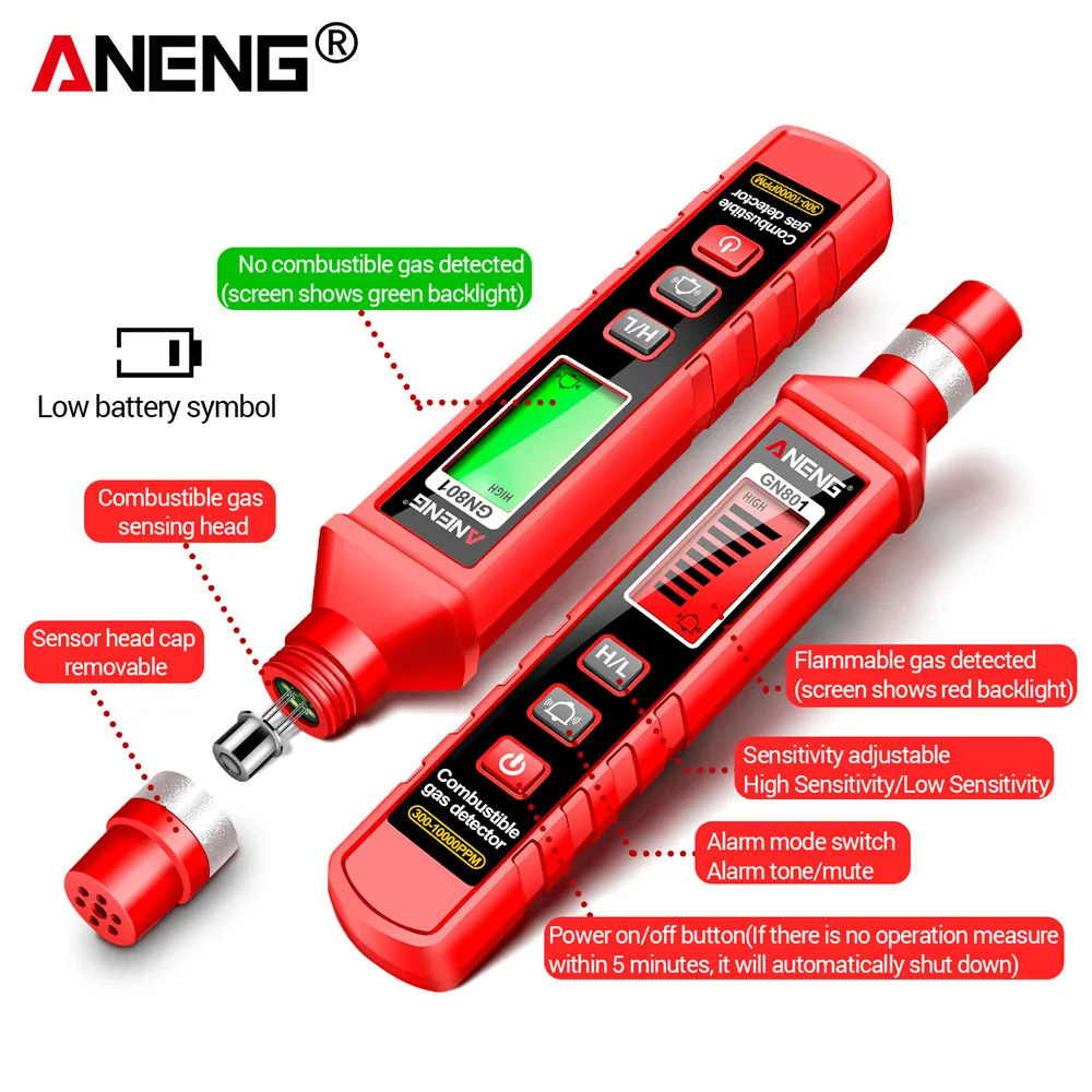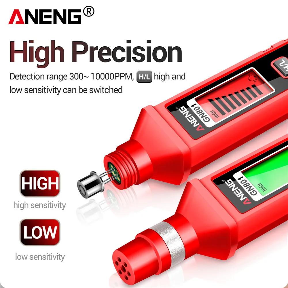 Comprar ANENG-Detector de Gas Combustible GN801, Analizador de Gas con alarma de sonido, medidor de fugas de Gas, herramientas de prueba ambiental LCD, 300 ~ 10000PPM