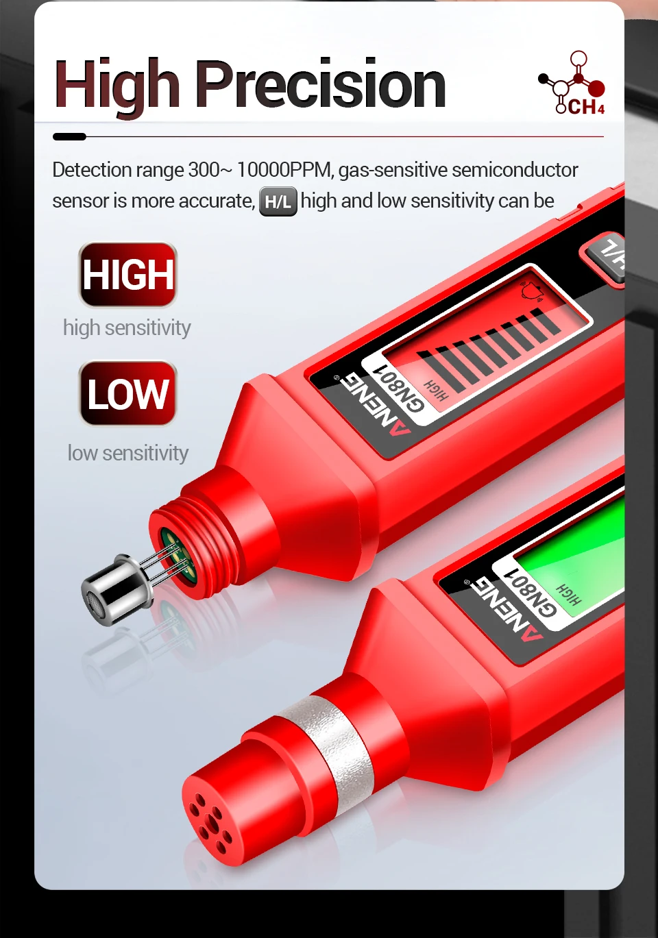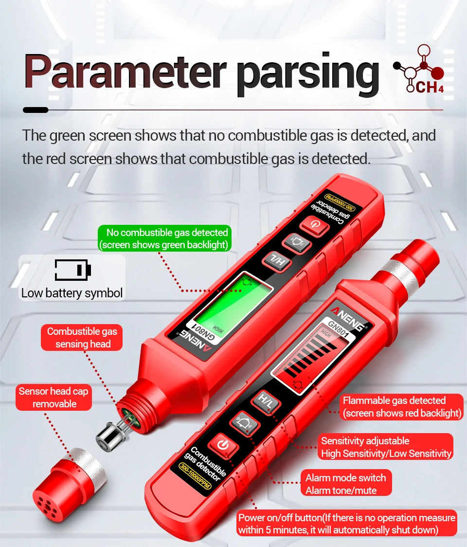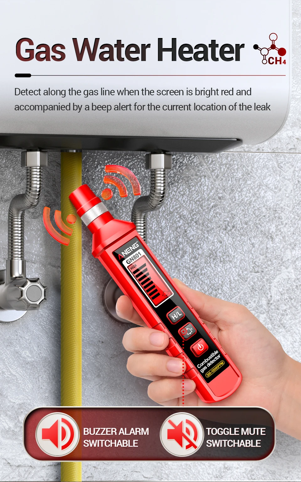 Comprar ANENG-Detector de Gas Combustible GN801, Analizador de Gas con alarma de sonido, medidor de fugas de Gas, herramientas de prueba ambiental LCD, 300 ~ 10000PPM