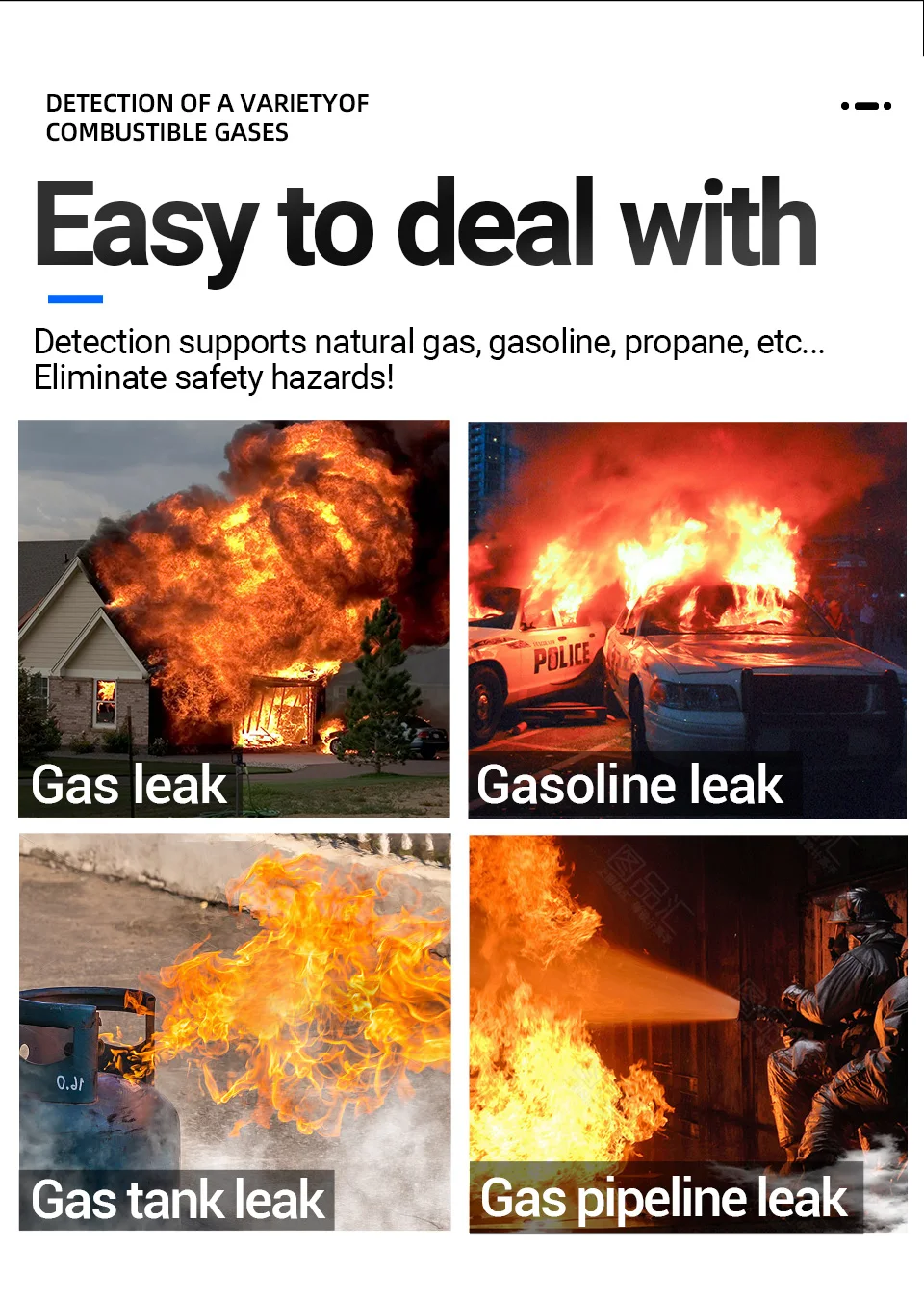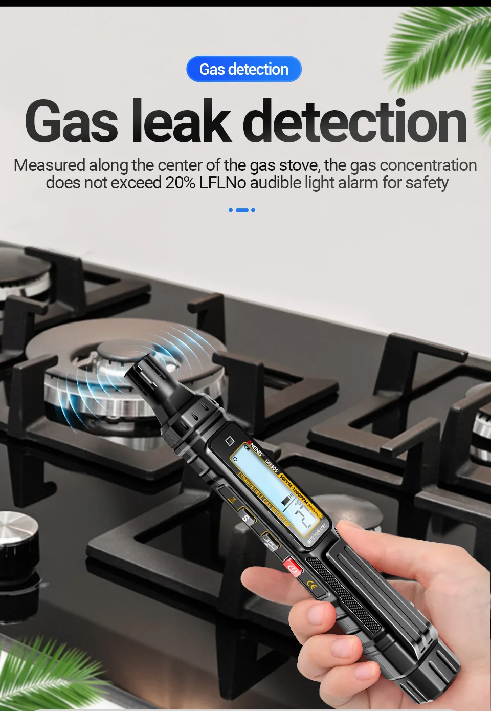 Este instrumento es un dispositivo de detección de fugas de gas combustible que se utiliza para detectar de manera rápida y confiable fugas de gases combustibles.