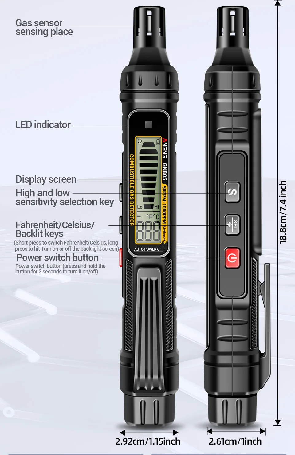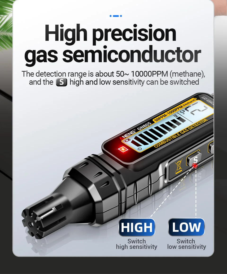 ANENG GN805 Detector de fugas de Gas Combustible 50 ~ 1000PPM Alarma Sonora Detector semiconductor sensible al Gas Herramientas de pantalla de fondo LCD