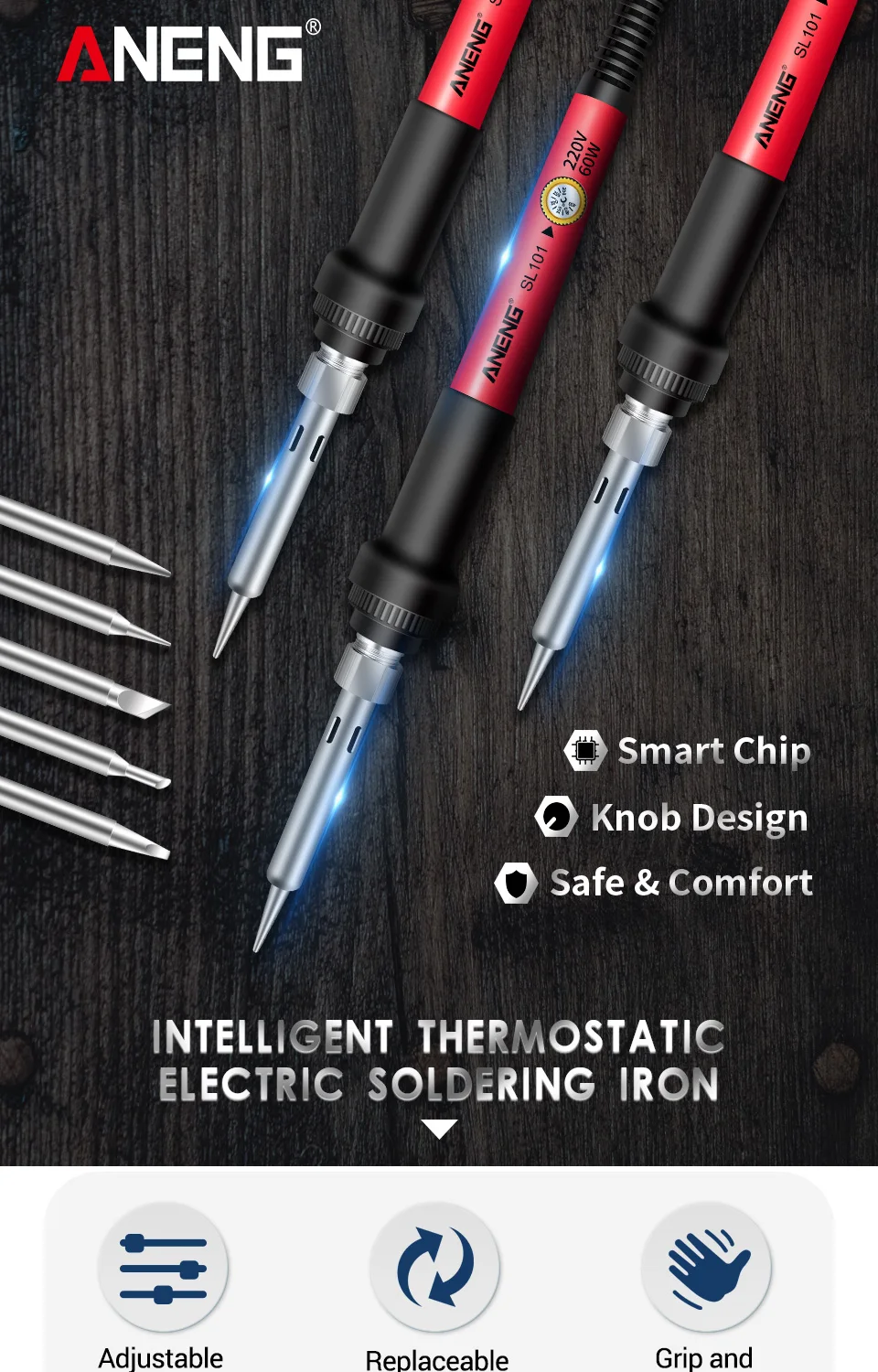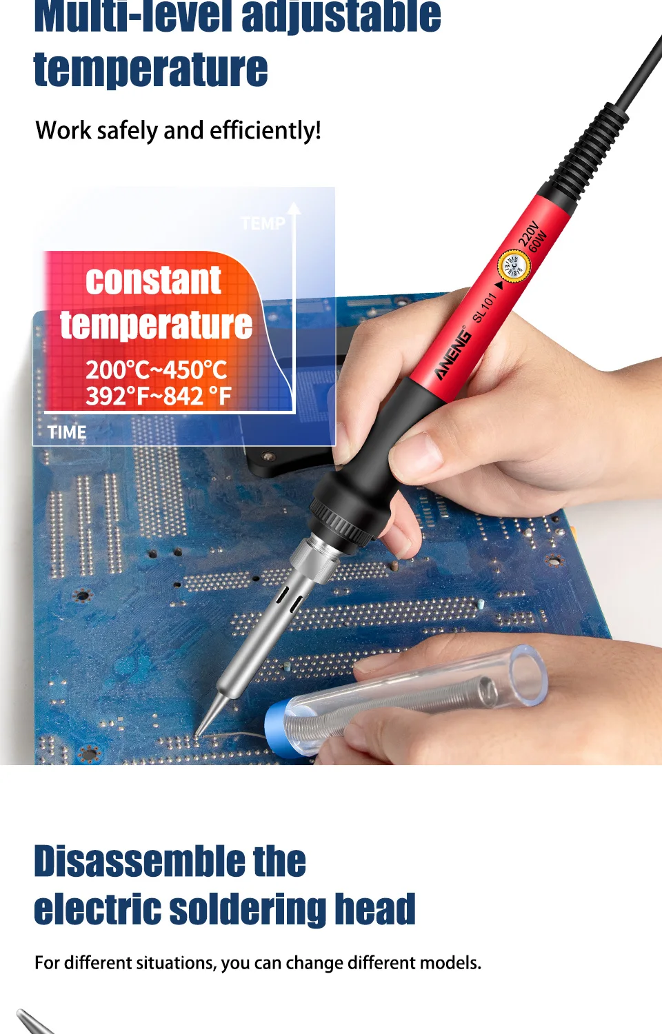 ANENG-Kit de soldador eléctrico Digital SL101, 60W, temperatura ajustable, 220V, 110V, herramienta de soldadura, calentador de cerámica, puntas de soldadura