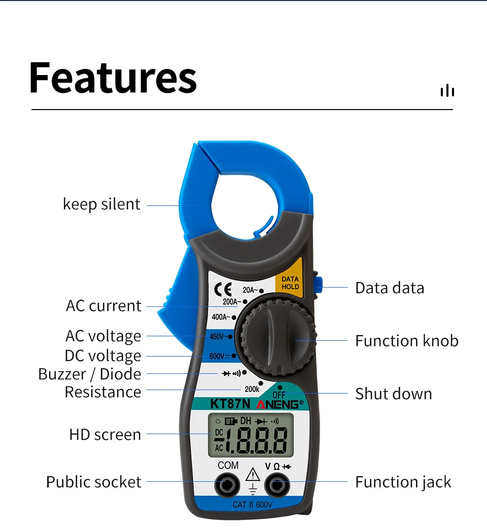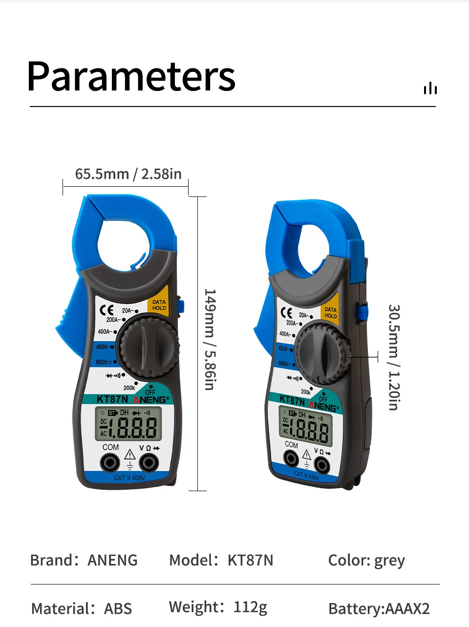 Comprar ANENG KT87N Mini medidores de pinza digitales voltaje CA/CC corriente CA 600v valores eficaces verdaderos multímetro capacitancia herramientas de prueba eléctrica