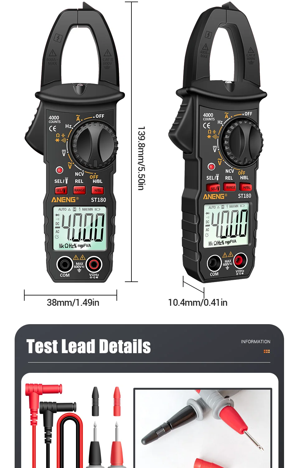 • Fácil de usar :Con su diseño simple y pantalla fácil de leer, El ANENG ST180 es fácil de usar y perfecto para profesionales y entusiastas del bricolaje.