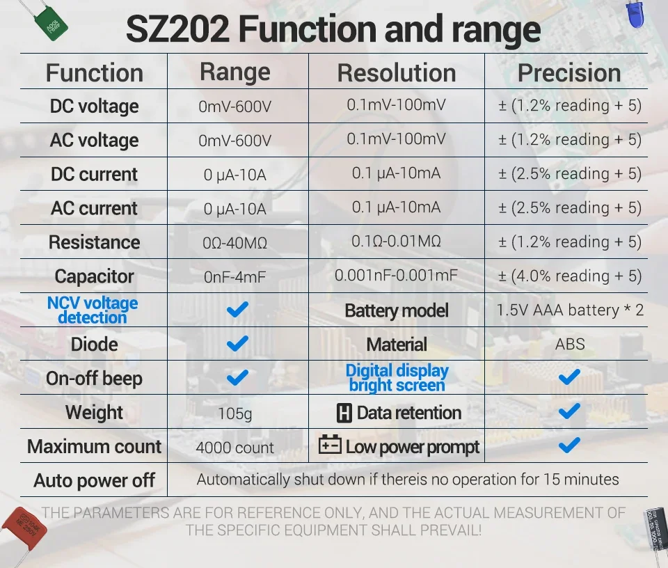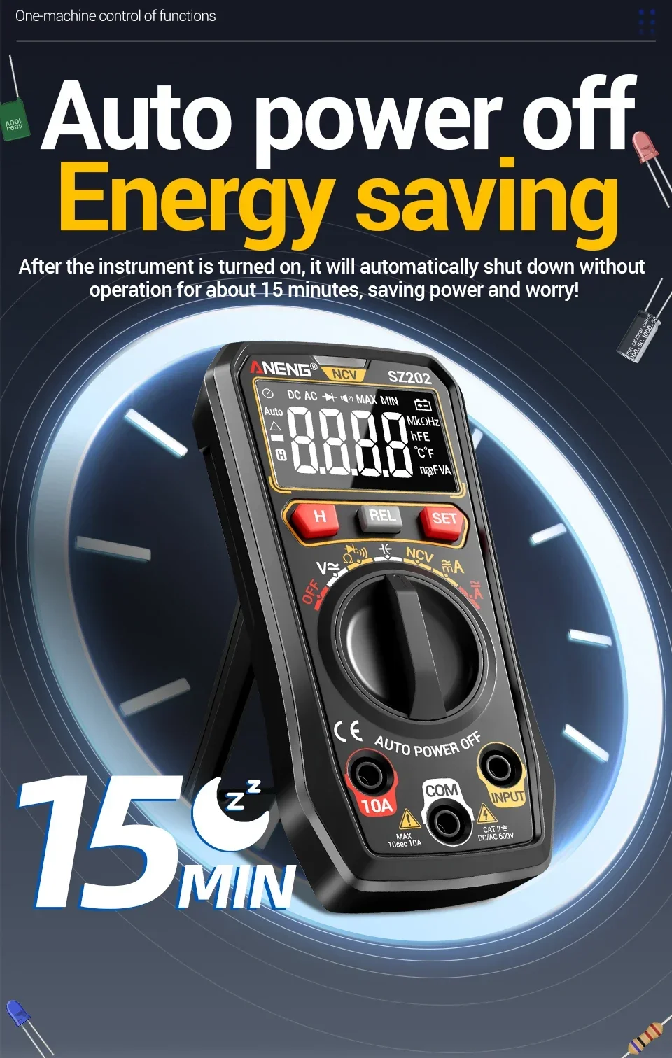 ANENG SZ202 Multímetro Digital Probador Voltaje/Resistencia + B18 Pluma de prueba de voltaje resaltado Inducción de voltaje NCV Juego de herramientas de detector de electricista profesional multifuncional