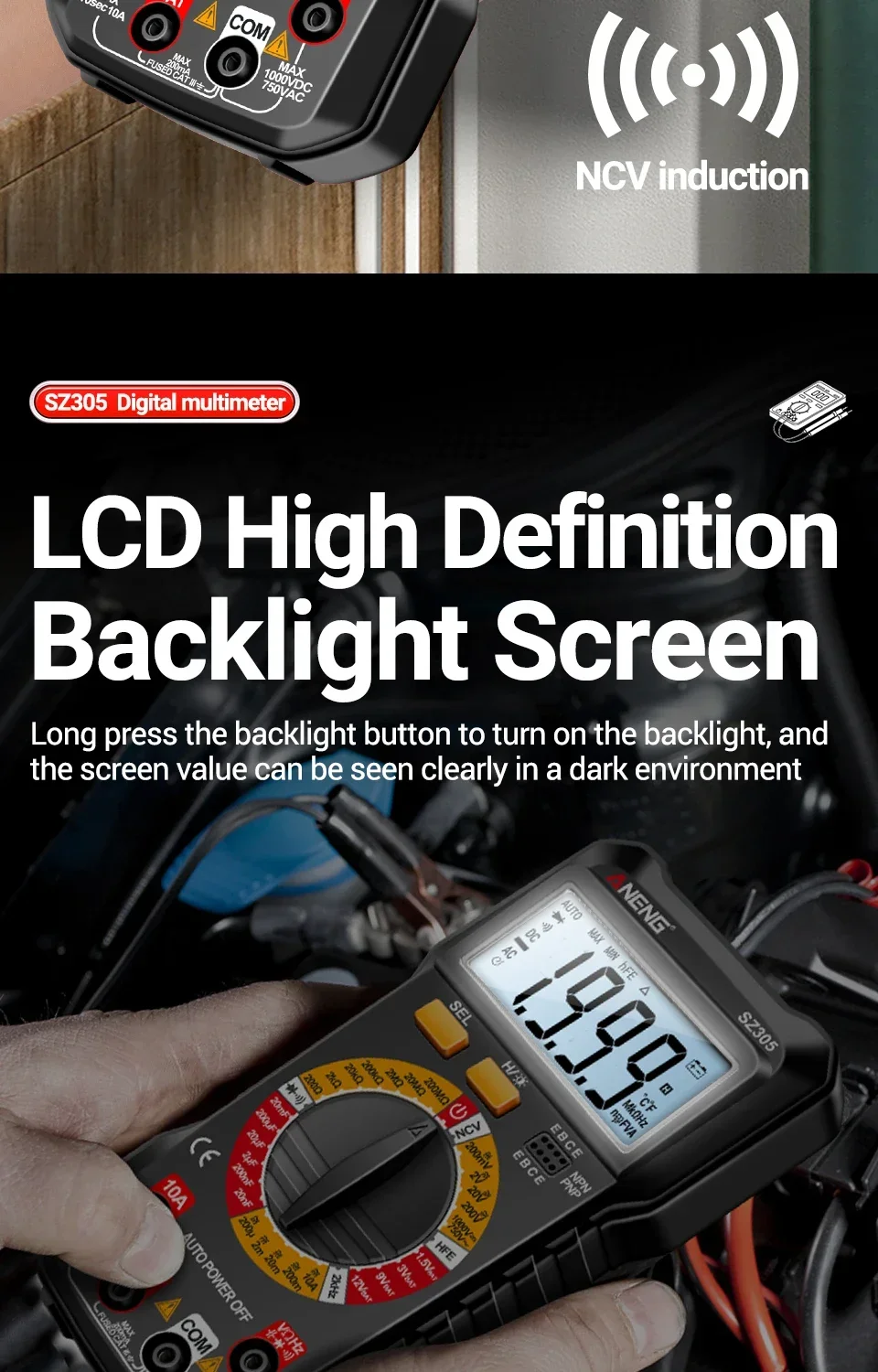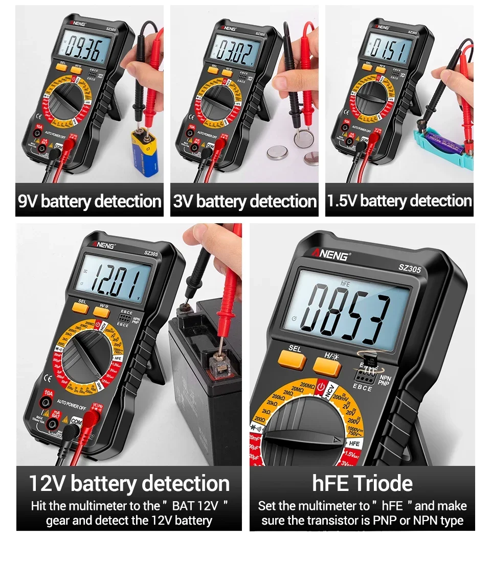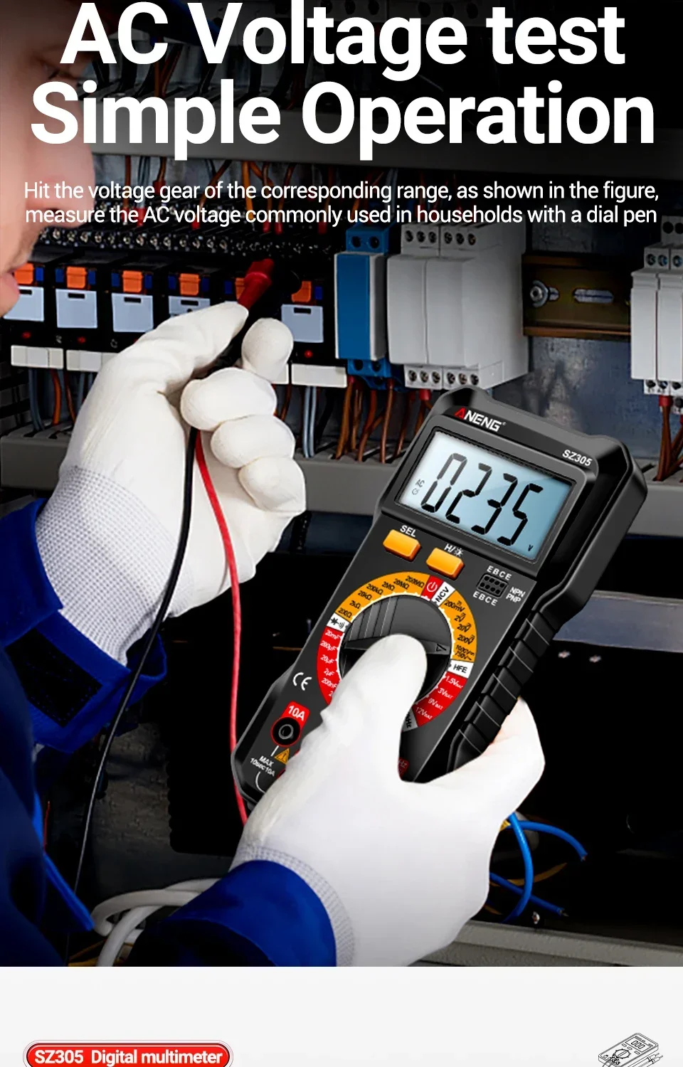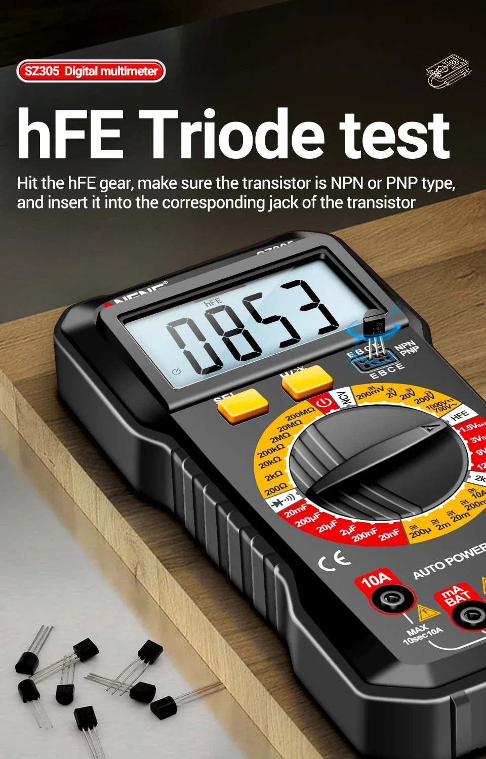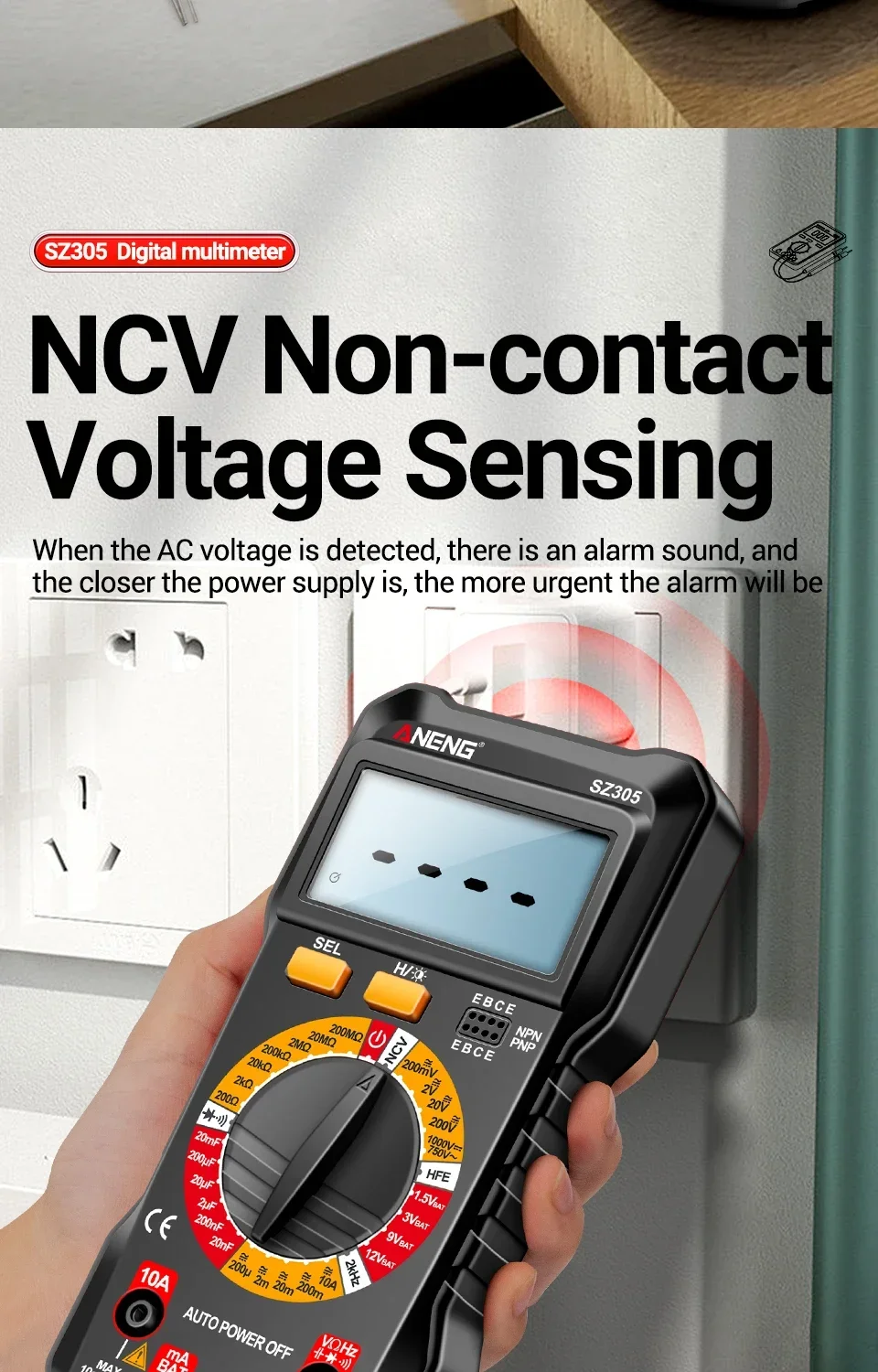 Comprar ANENG-multímetro Digital SZ305, profesional, 1999 recuentos, amperímetro de corriente CA, voltímetro, condensador, triodo hFE, herramienta de prueba de Detector Hz
