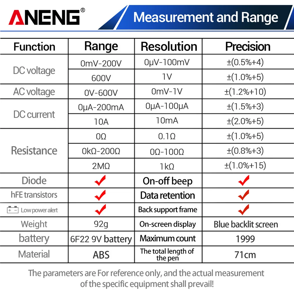 ANENG XL830L Digital LCD Multimeter Voltmeter Ammeter AC DC OHM Volt Tester Test Current