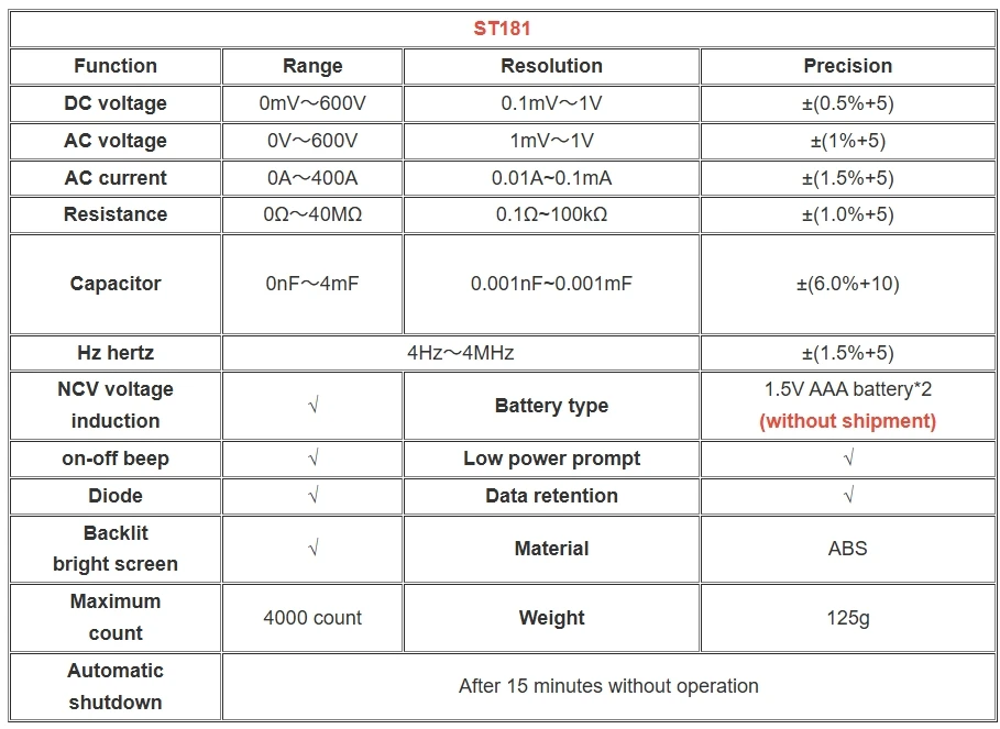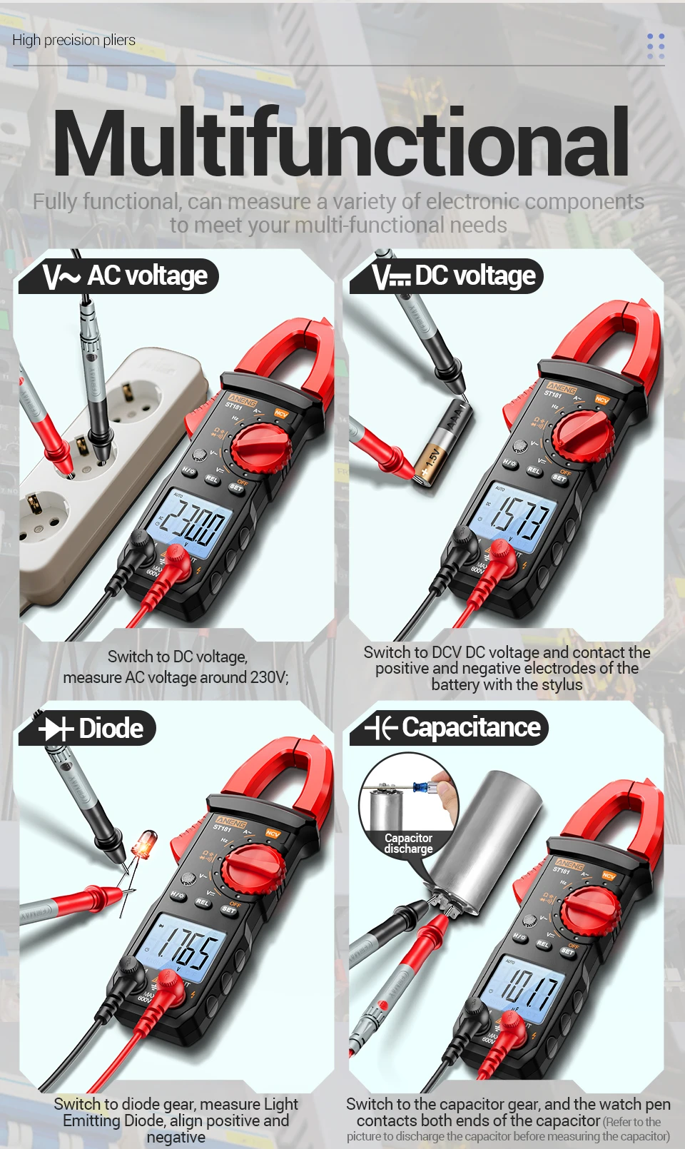 Pinza amperimétrica ANENG ST181