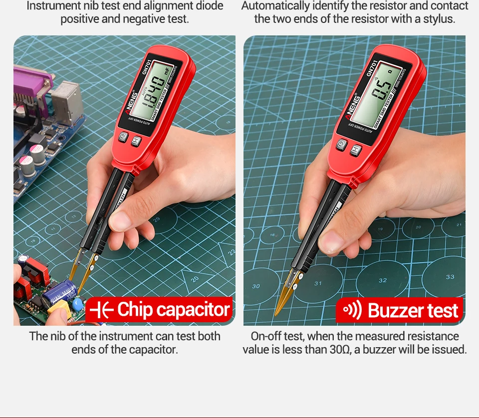 No mide capacitancia por encima de 22 nF. Un dispositivo inferior; no está claro dónde usarlo sin un medidor de capacitancia adecuado.
