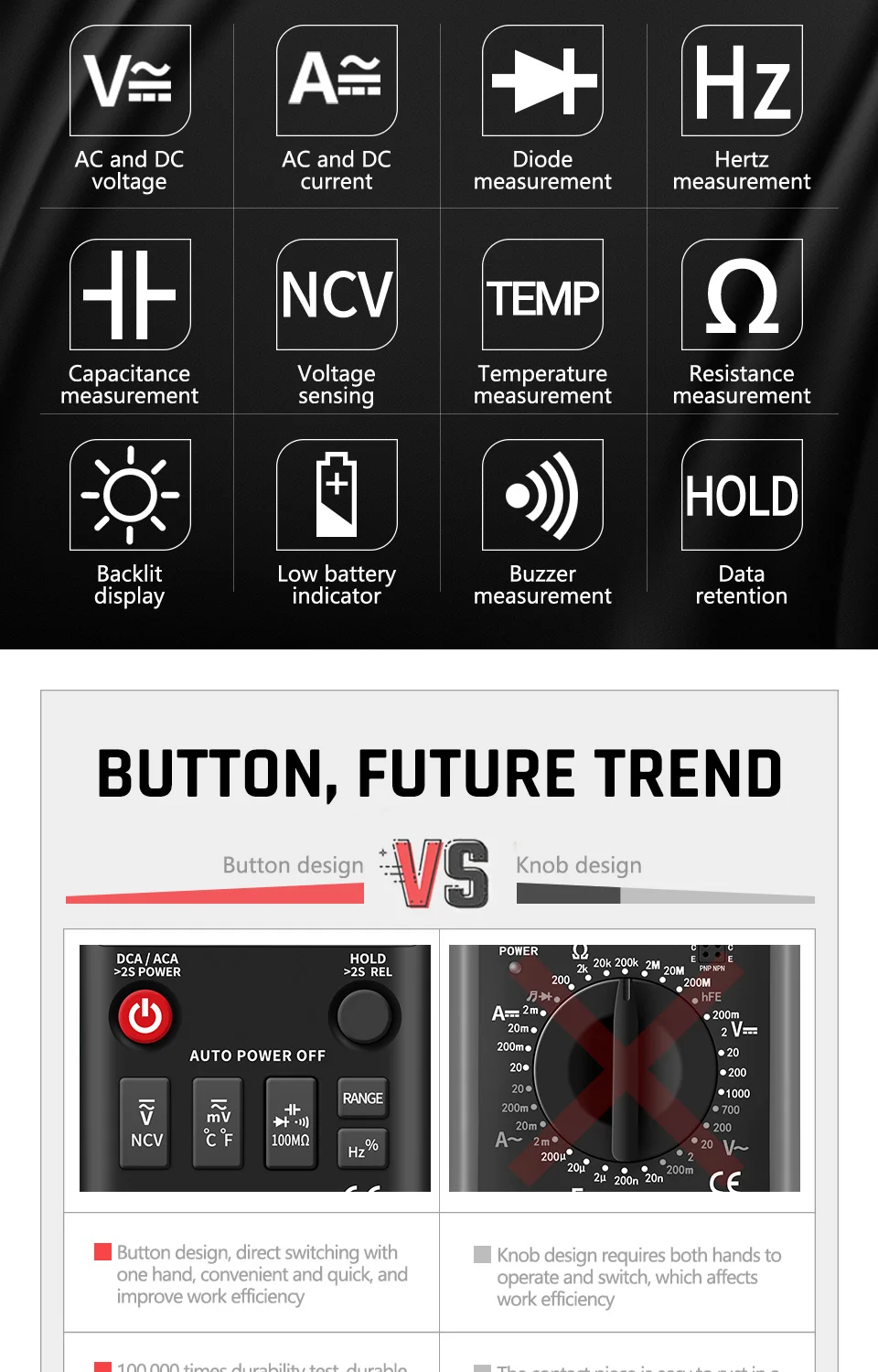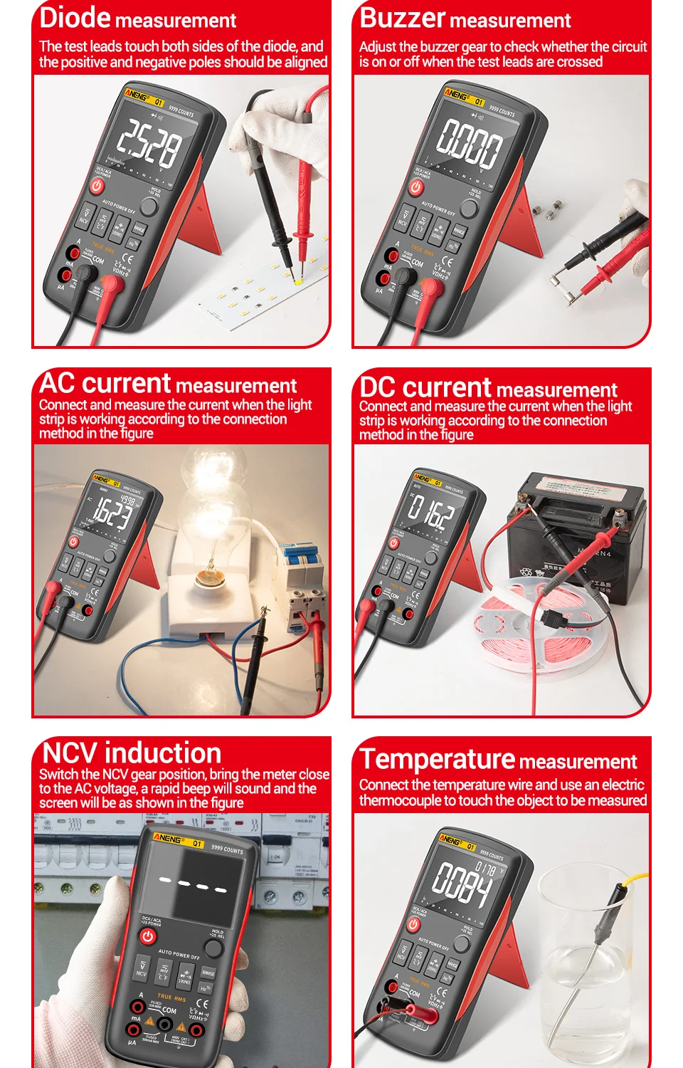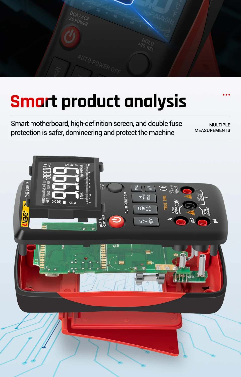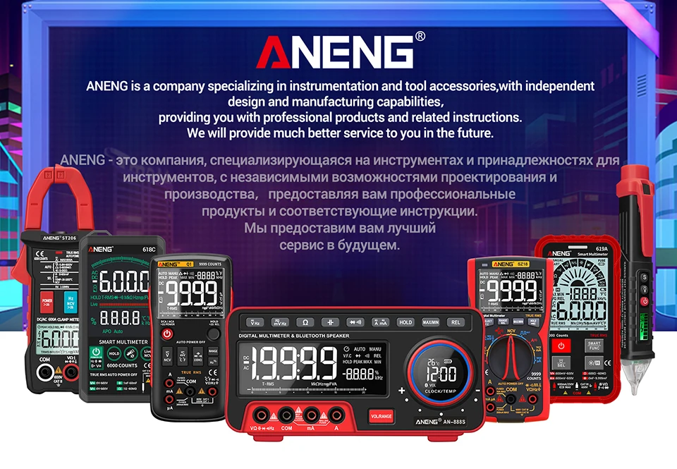 ANENG Q1 pulsador multímetro Digital True-RMS 9999 recuentos con gráfico de barra analógica amperímetro de voltaje CA/CC corriente Ohm automático/manual
